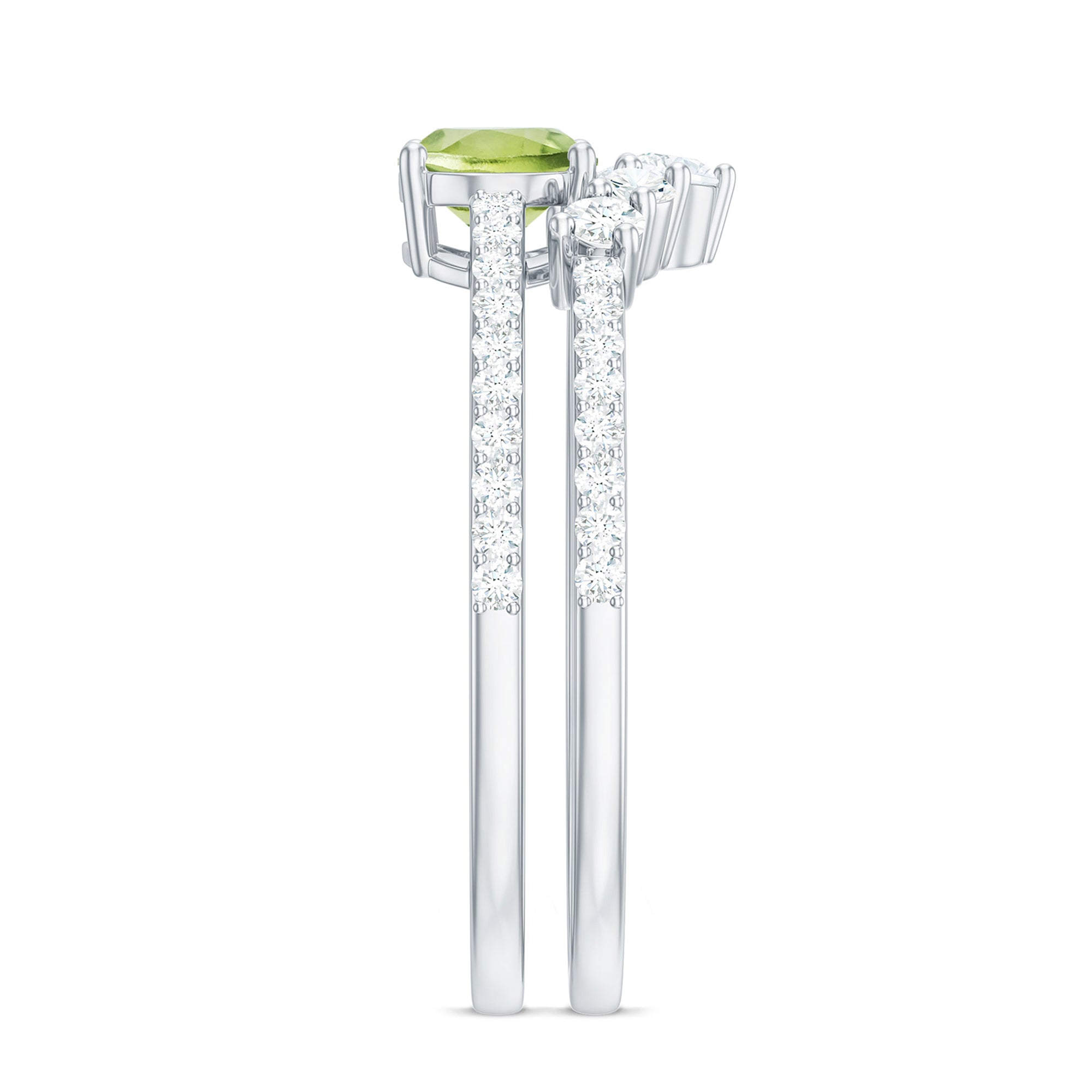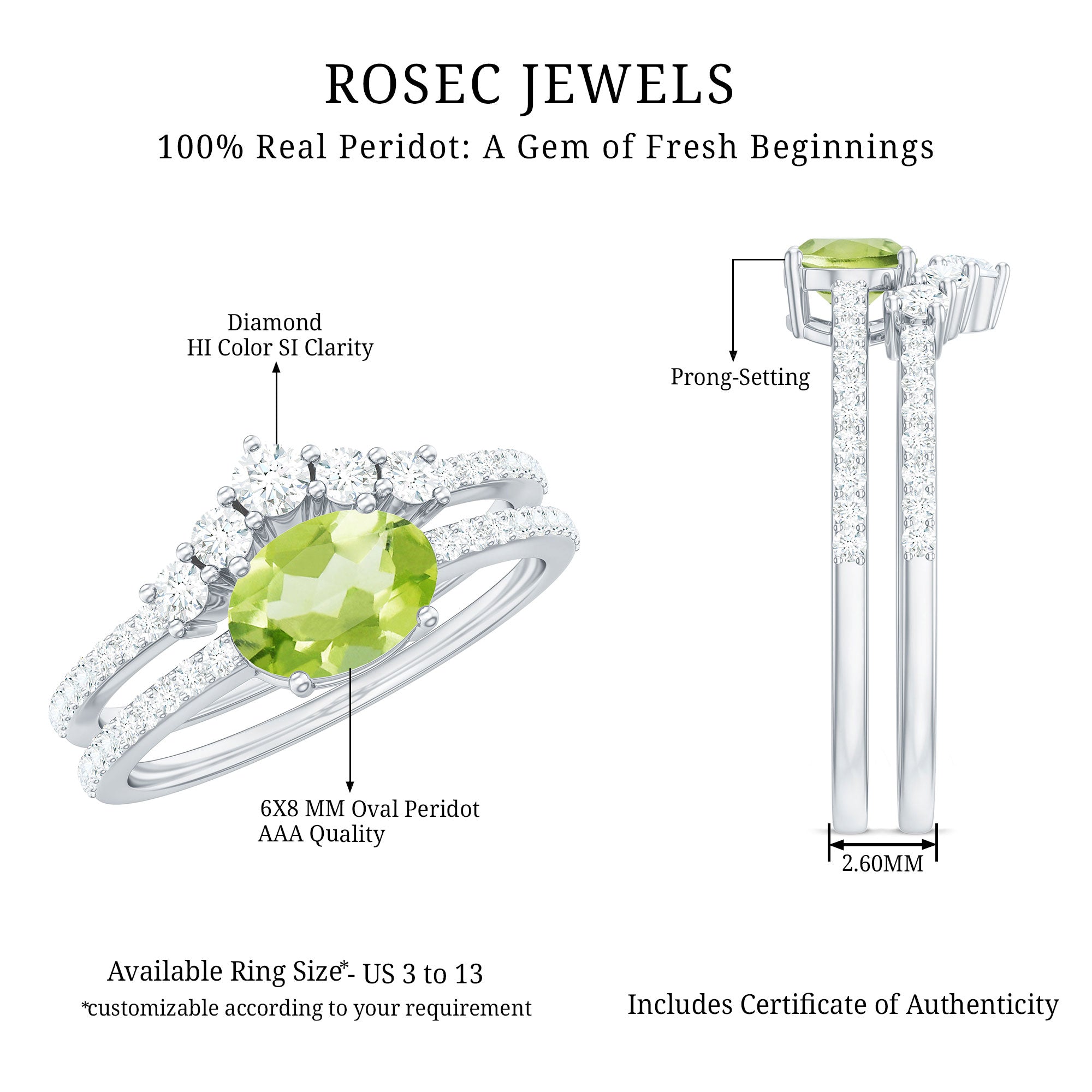 Celebrate your special day in style with the Magical Peridot Wedding Ring Set, designed to add a touch of sparkle and elegance to your ensemble. The set includes an Oval Cut Peridot Ring paired with a Diamond Ring Enhancer, both crafted from Gold to ensure durability and long-lasting beauty. Make your wedding day magical with this exquisite ring set.