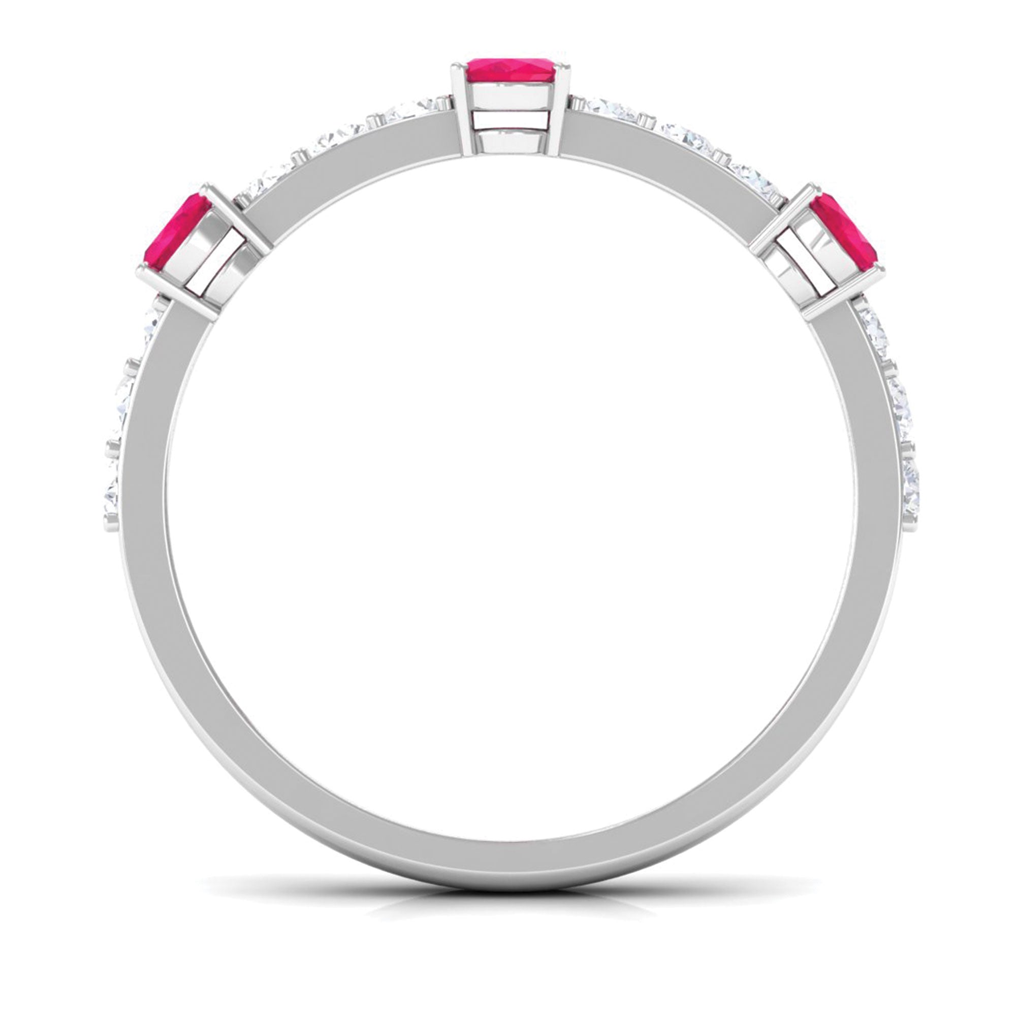Oval Shape Ruby and Diamond Half Eternity Band Ring
