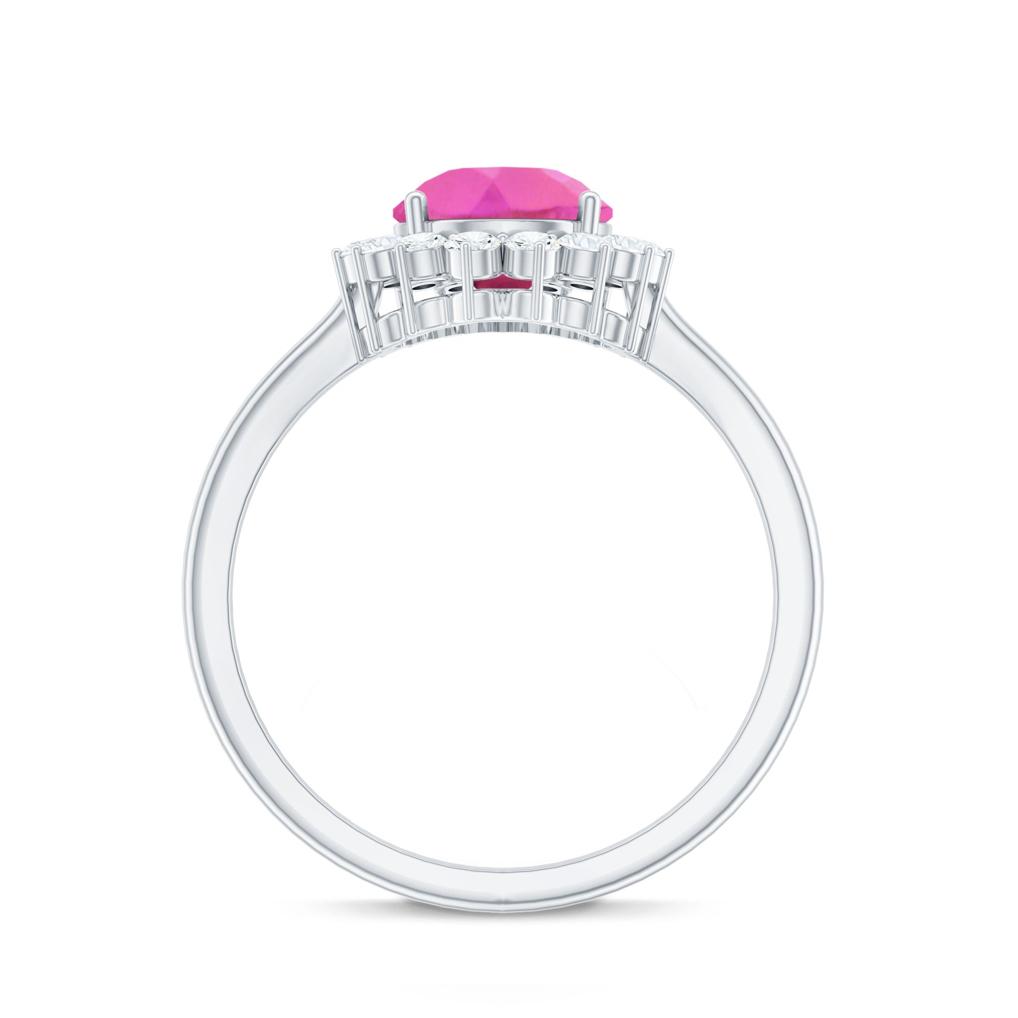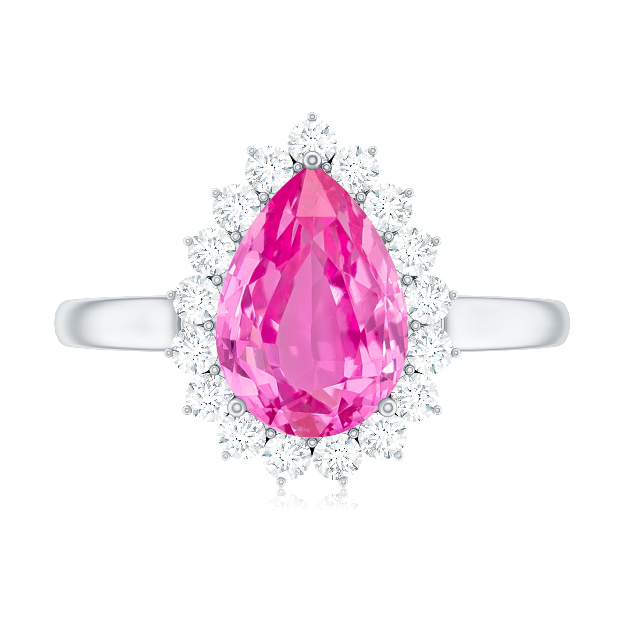 Pear Created Pink Sapphire and Diamond Halo Engagement Ring