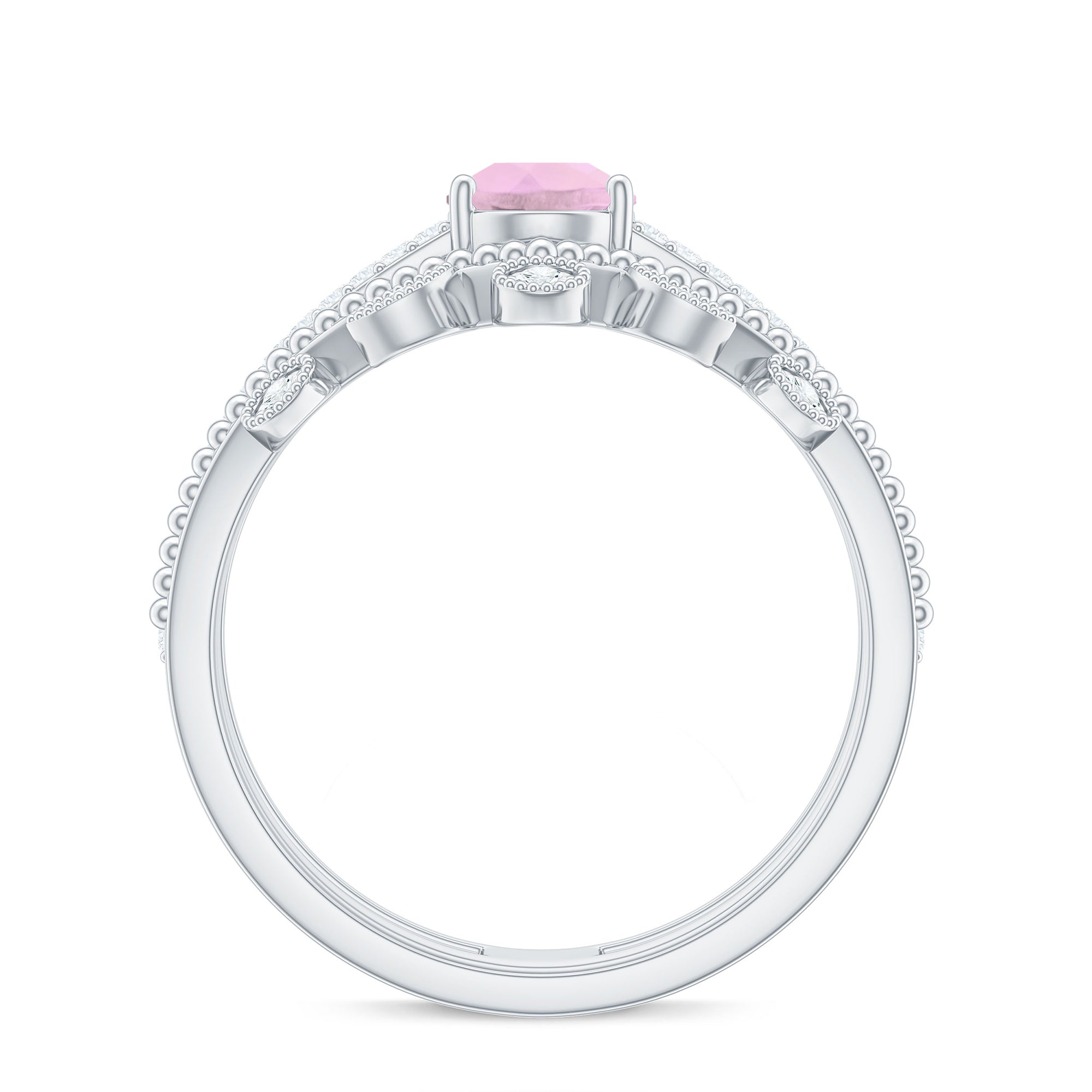 Prepare to be captivated by the mesmerizing beauty of this Bridal Ring Set. The centerpiece of this set is a stunning 5X7 MM Pear Cut Rose Quartz, delicately set in a prong setting to showcase its brilliance and clarity. The solitaire ring is complemented by a Moissanite band, creating a perfect blend of uniqueness and brilliance. This ring set is a true statement of refined taste and style. Let its beauty and charm adorn your finger and leave a lasting impression on all who behold it.