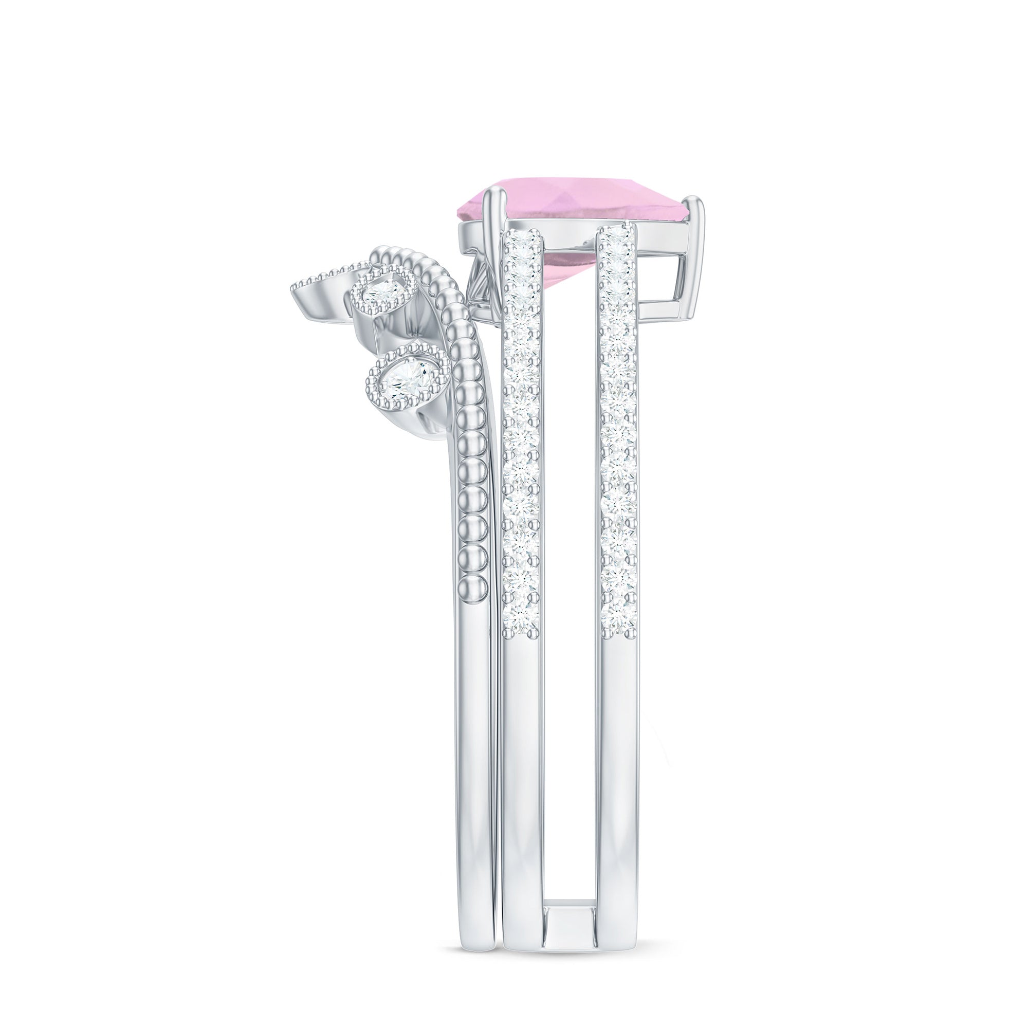 Pear Cut Natural Rose Quartz and Moissanite Wedding Ring Set