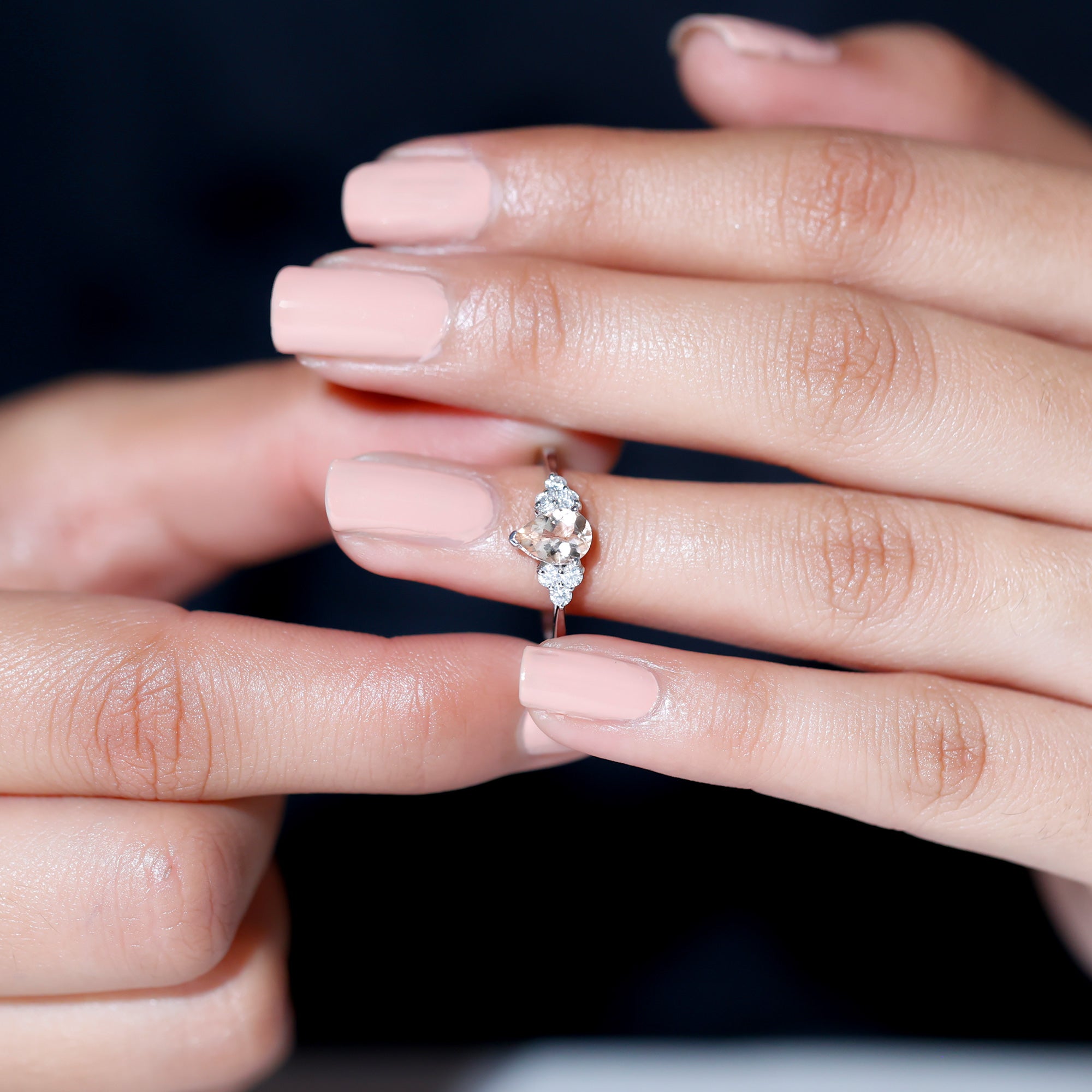 Pear Shaped Morganite Solitaire Ring with Diamond Trio