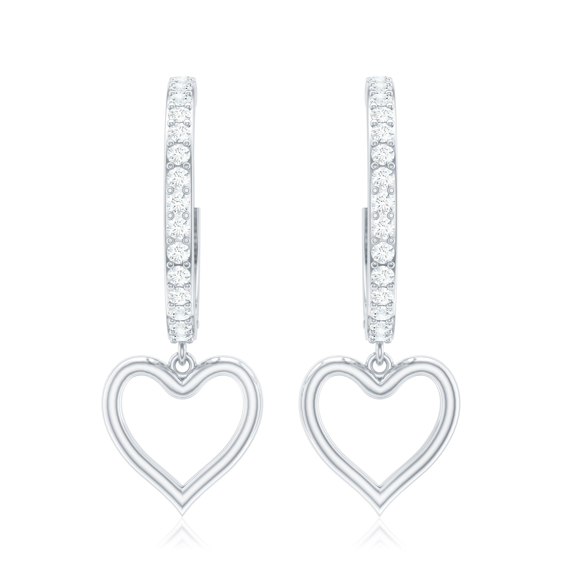 Real Diamond Heart Shape Hoop Drop Earrings in Gold