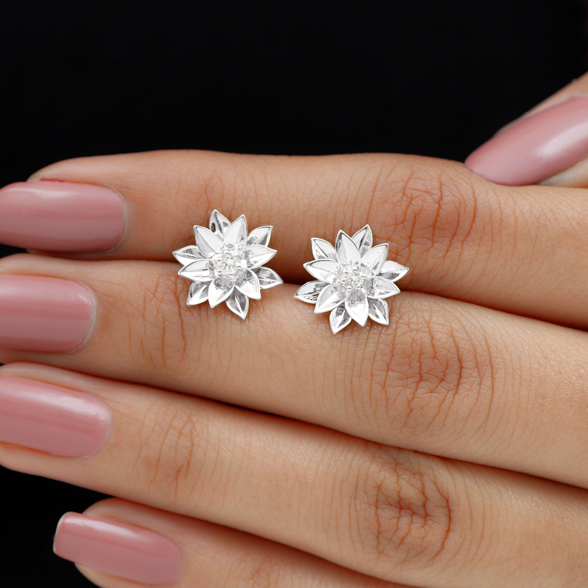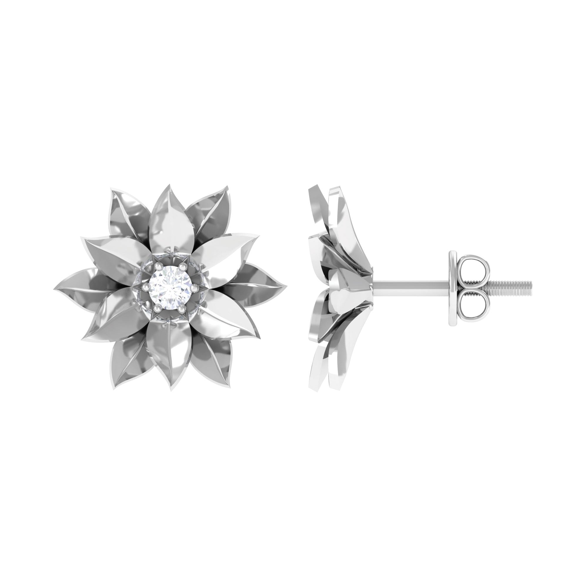 Round Cut Natural Diamond Gold Flower Stud Earrings