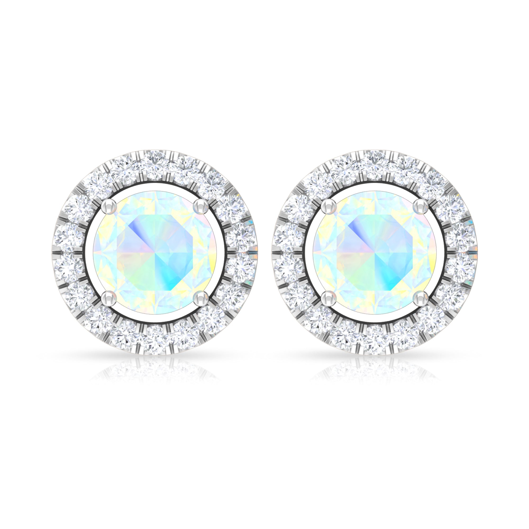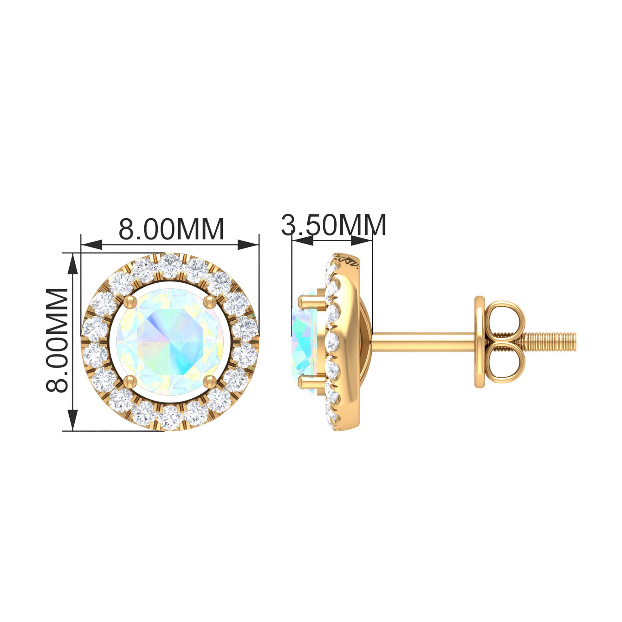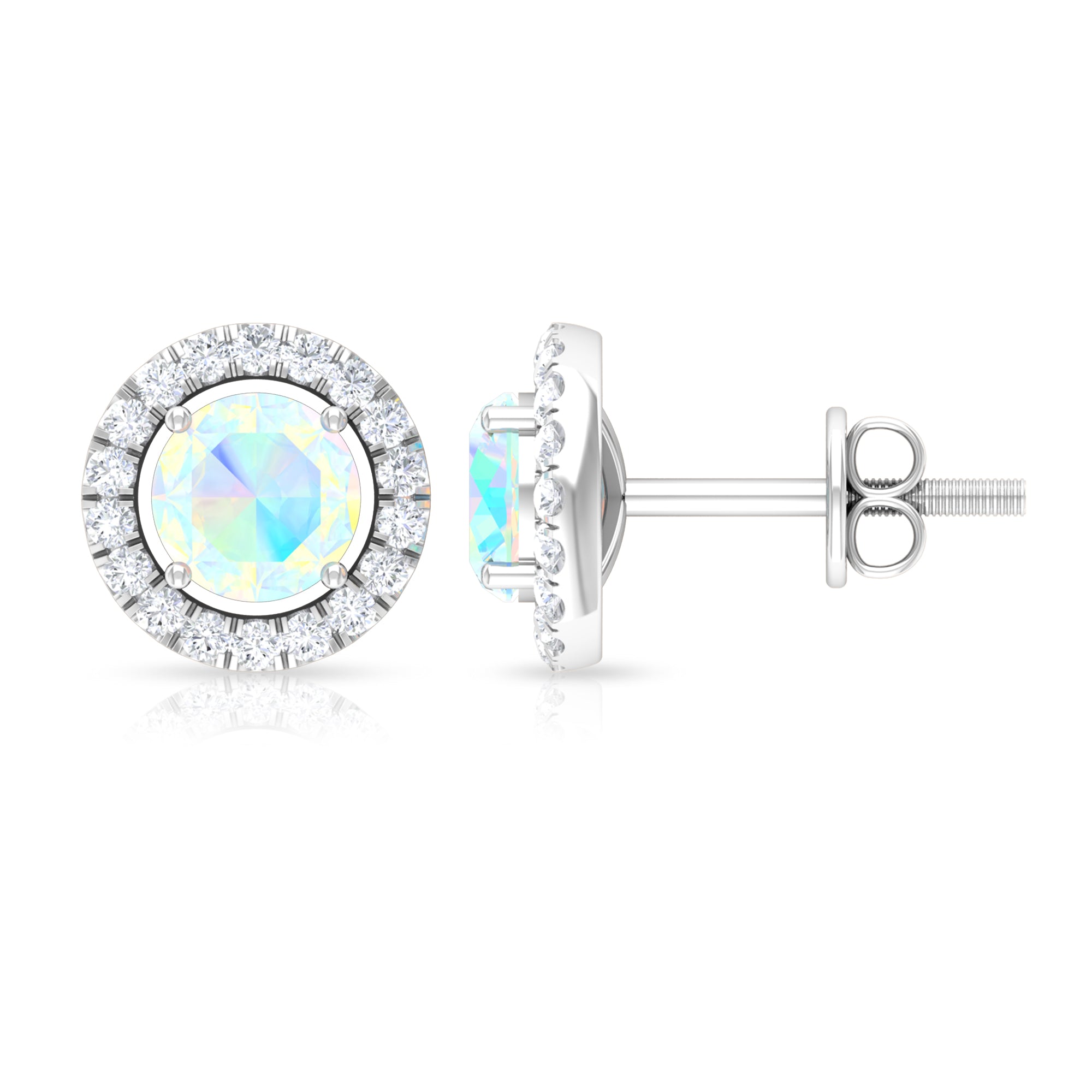 Round Ethiopian Opal and Diamond Halo Stud Earrings