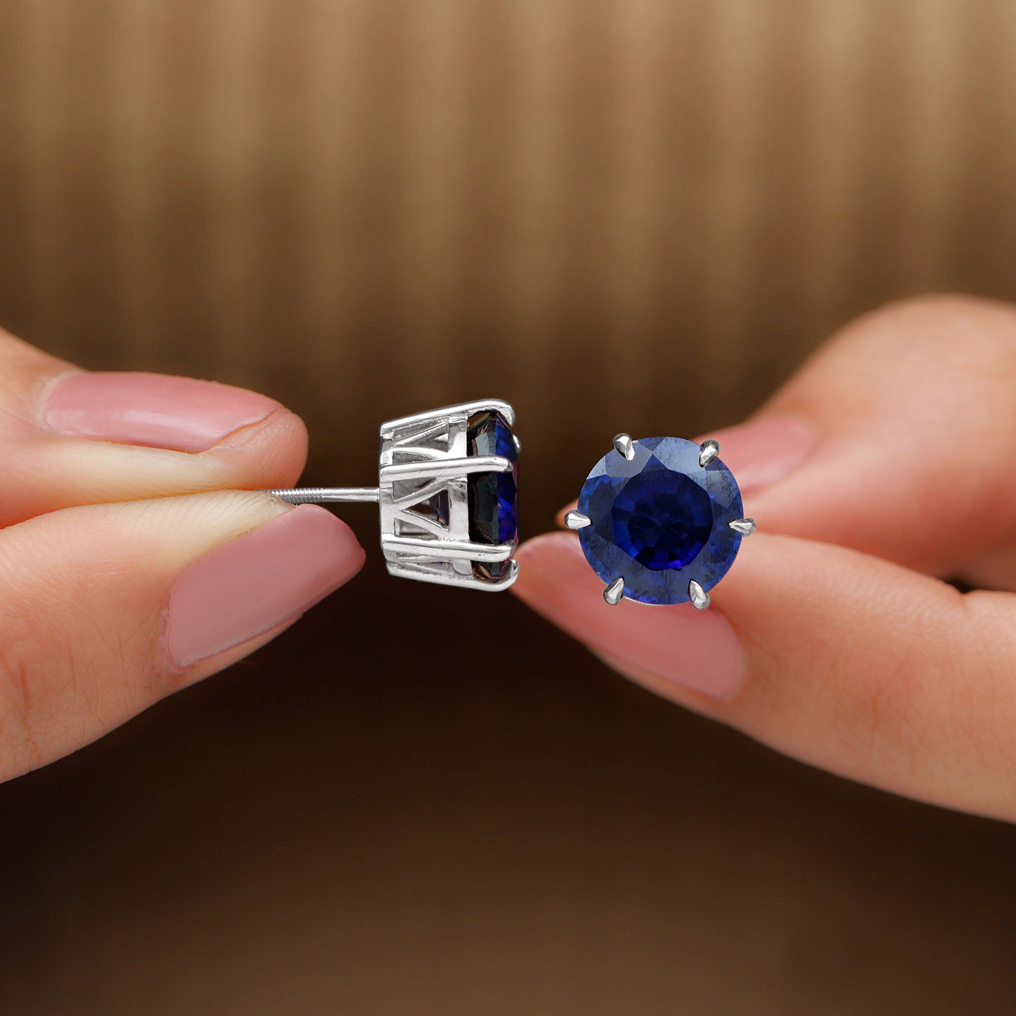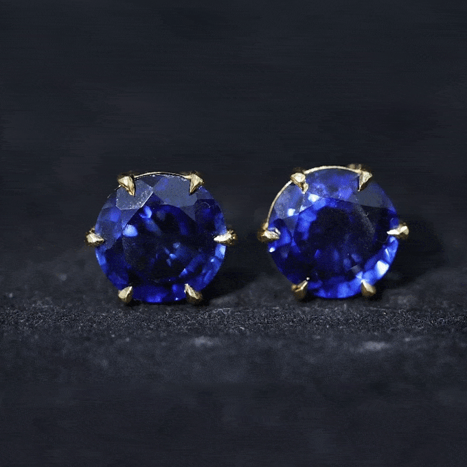 These Round Shape Stud Earrings are adorned with Created Blue Sapphire Solitaire in 6 Claw Prong Setting to make for an elegant and trendy choice for your everyday styles.