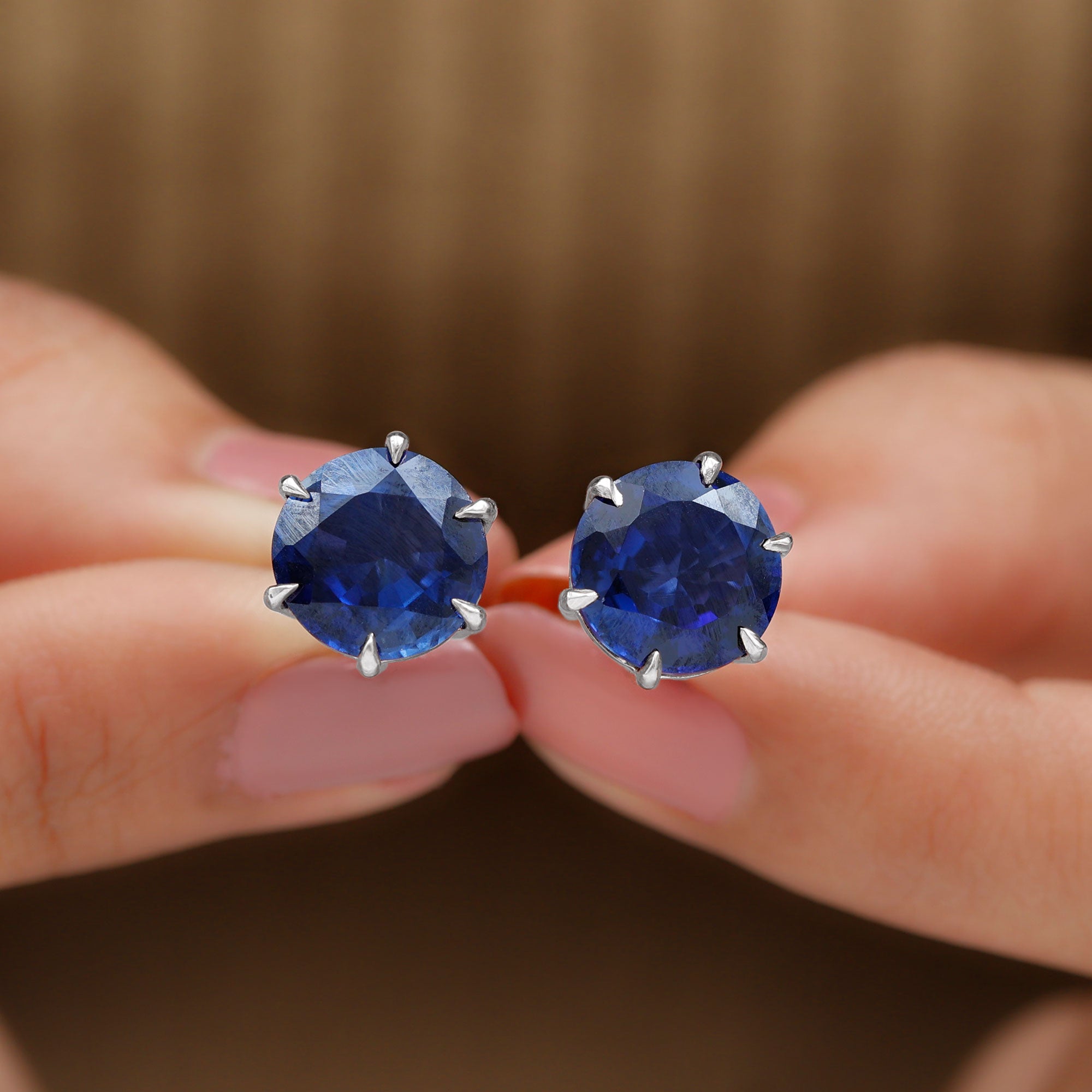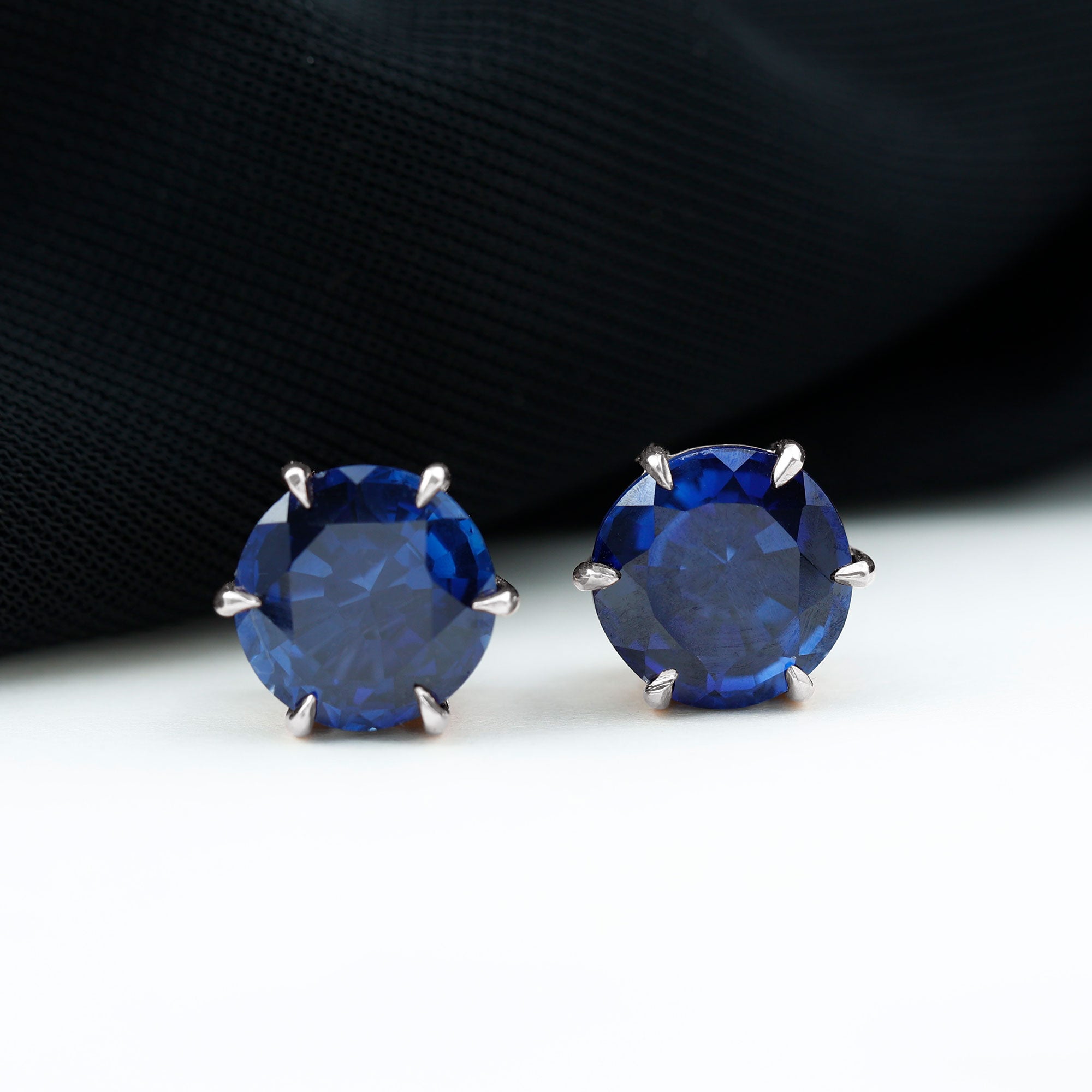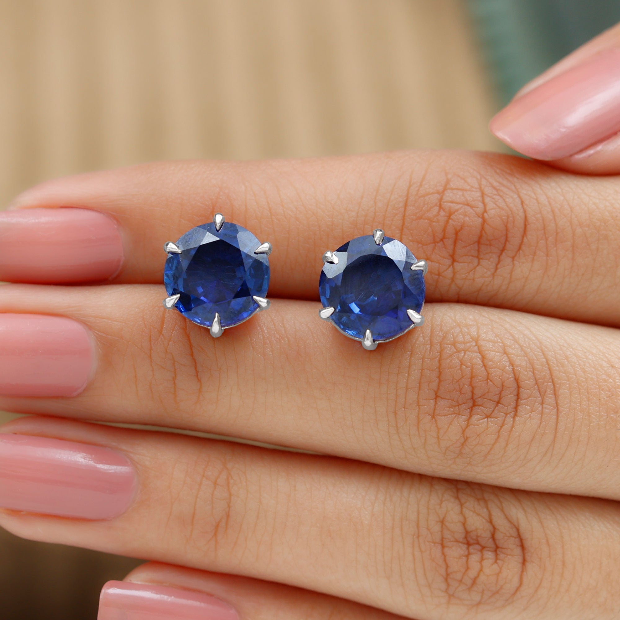Round Lab Grown Blue Sapphire Solitaire Stud Earrings in 6 Claw Prong Setting