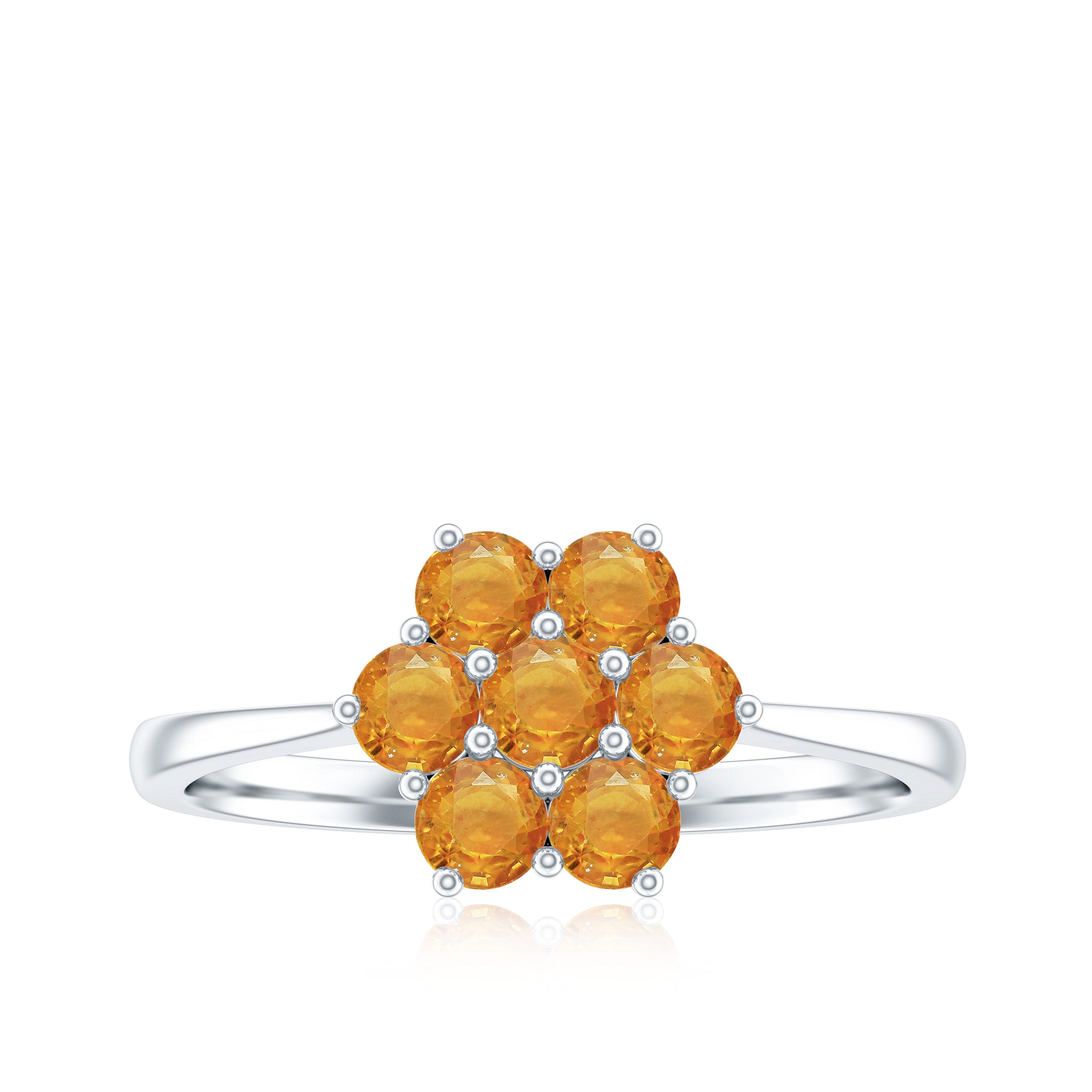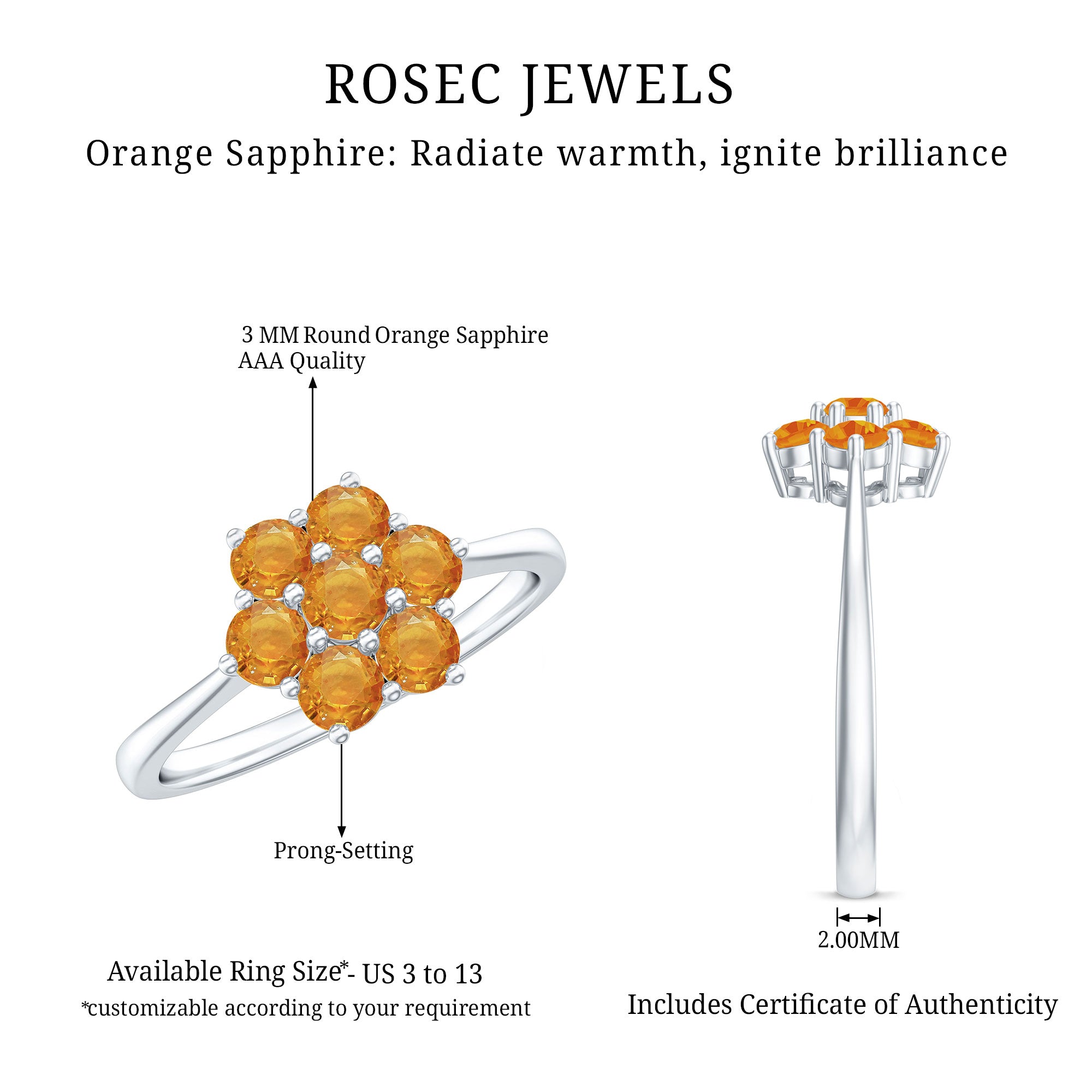 Round Orange Sapphire Flower Cluster Engagement Ring