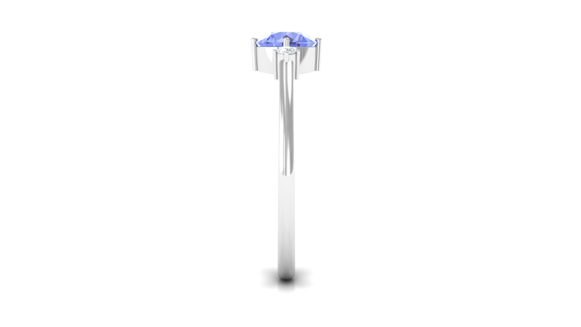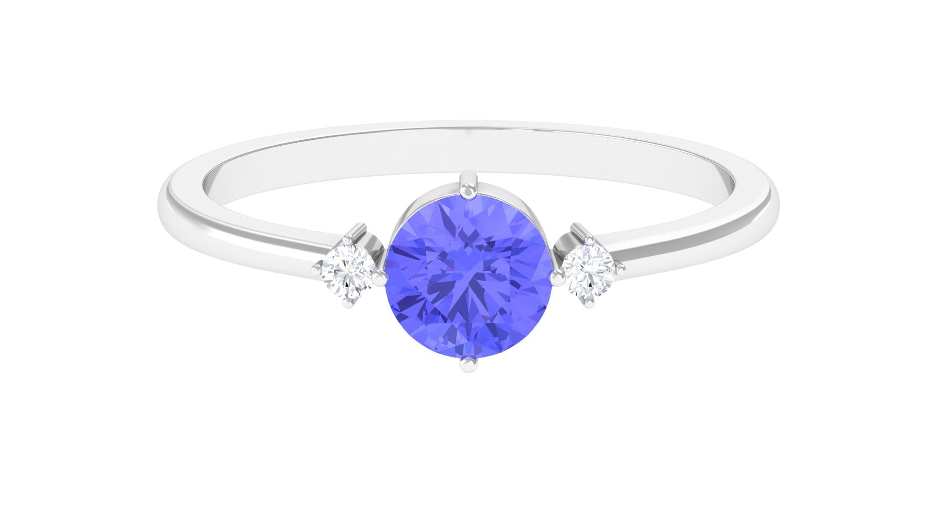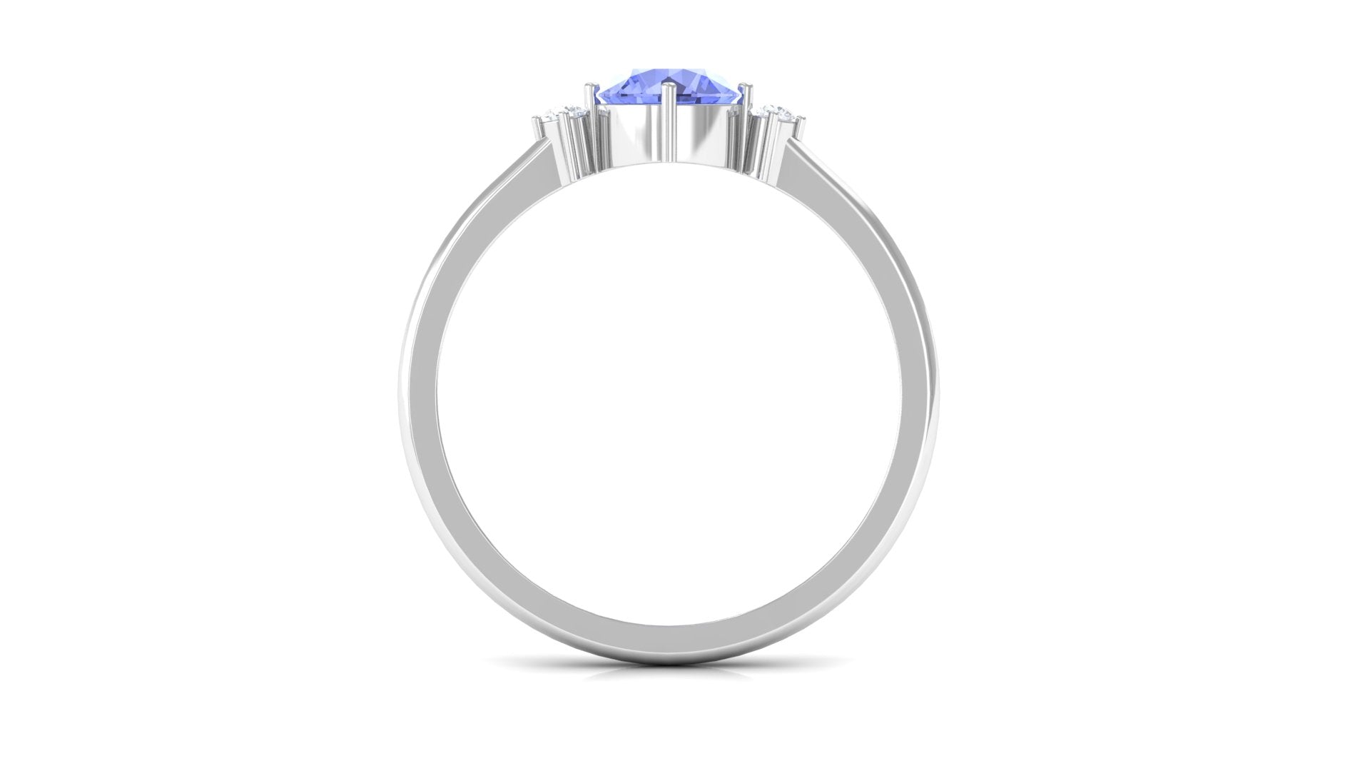 Minimalist but eye-catching, this Tanzanite Promise Ring can never fail to woo her. Shining subtly in the royal pop of purple, the centerpiece of 6 MM Round Shape Tanzanite captivates with its allure, held by 4 Prong Diagonal Setting. The stones of 6 MM Round Shape Diamond on either sides complement its royal charm with a dash of elegance. This Certified Tanzanite Ring fits with your casual and fancy attires alike.