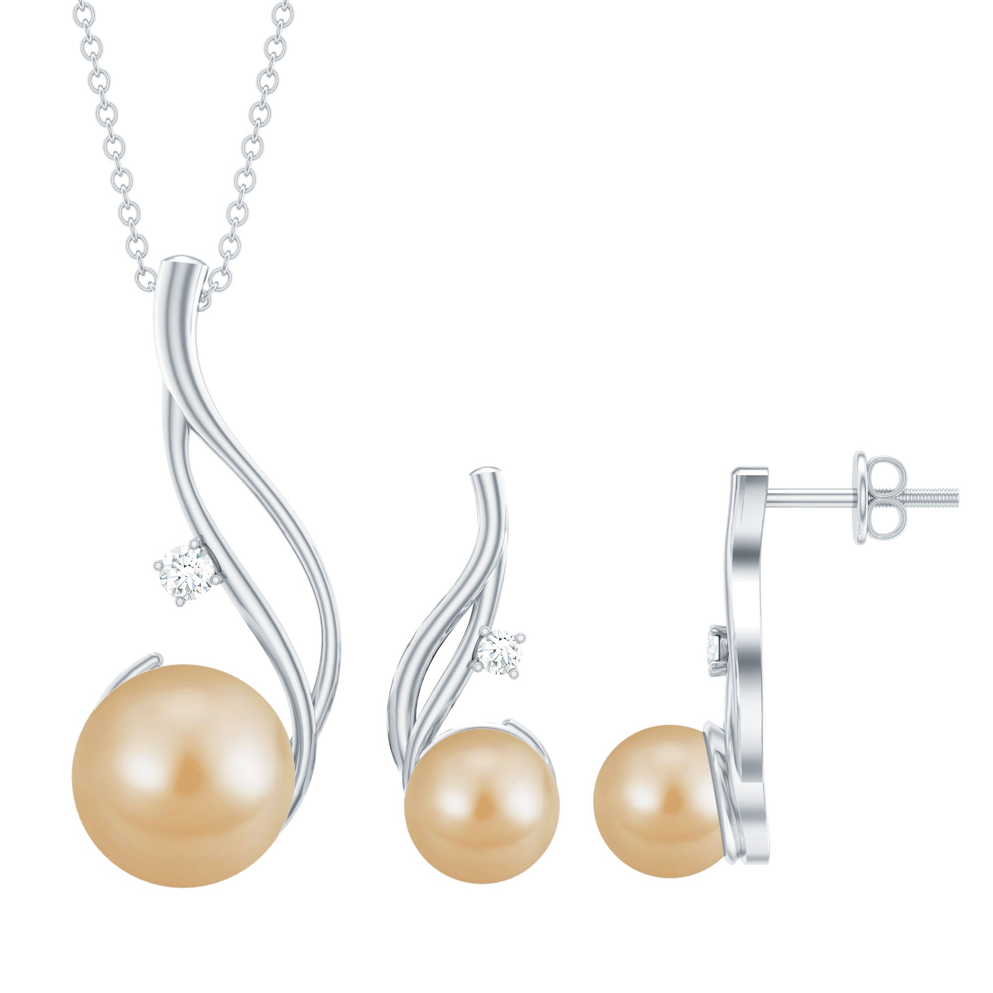 Simple South Sea Pearl Leaf Jewelry Set with Diamond