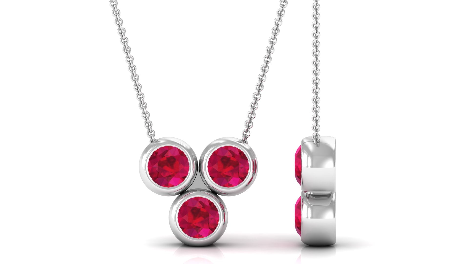 Three Stone Bezel Set Ruby Pendant Necklace For Women