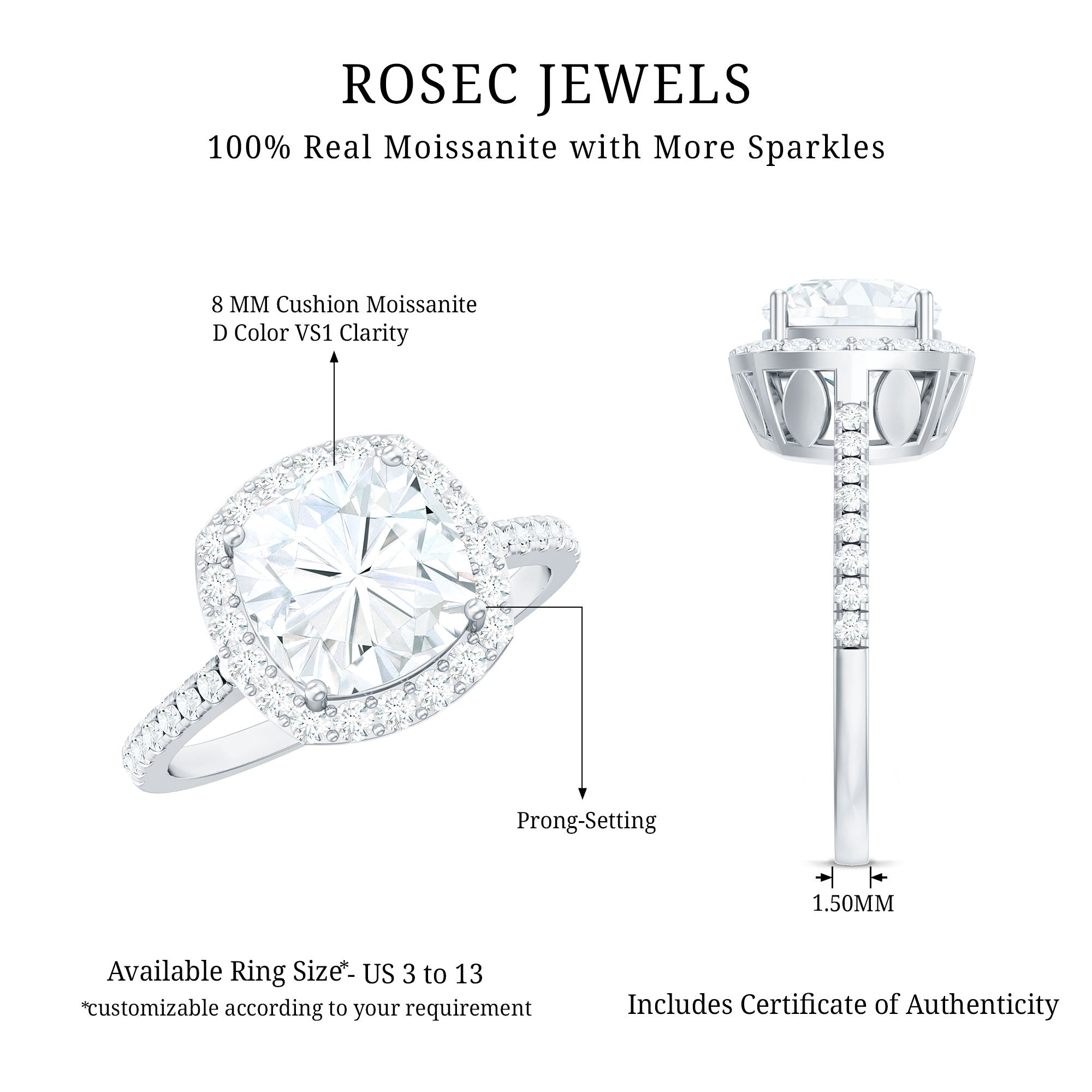 Victorian Style 8 MM Cushion Moissanite Halo Engagement Ring