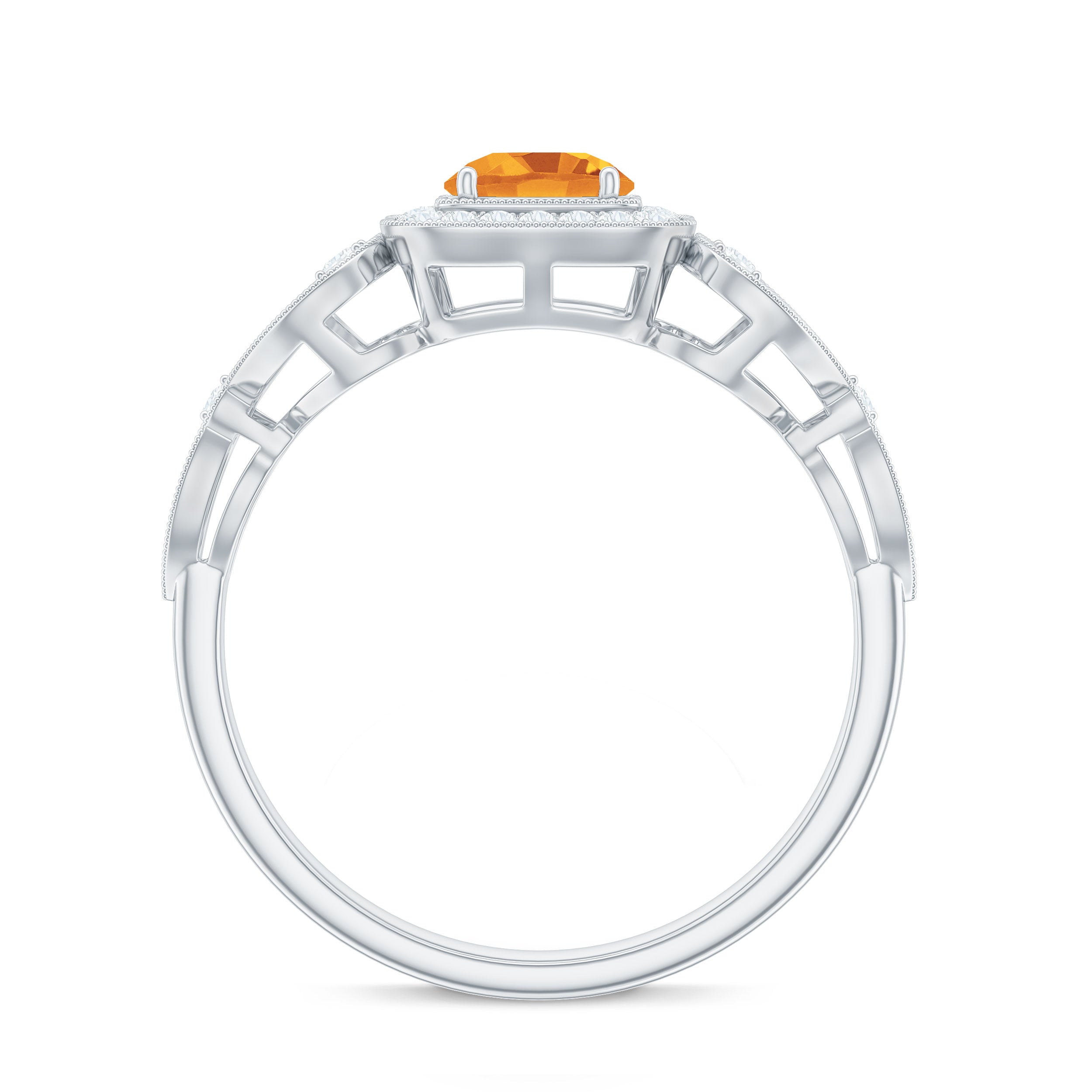 Vintage Citrine and Diamond Milgrain Engagement Ring