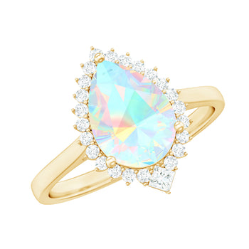 Sold out - Certified Real 8X10mm Ethiopian Rainbow Opal Teardrop Engagement Ring with Diamond Halo+sp.priceRaw ? 'price price--on-sale' : 'price'">