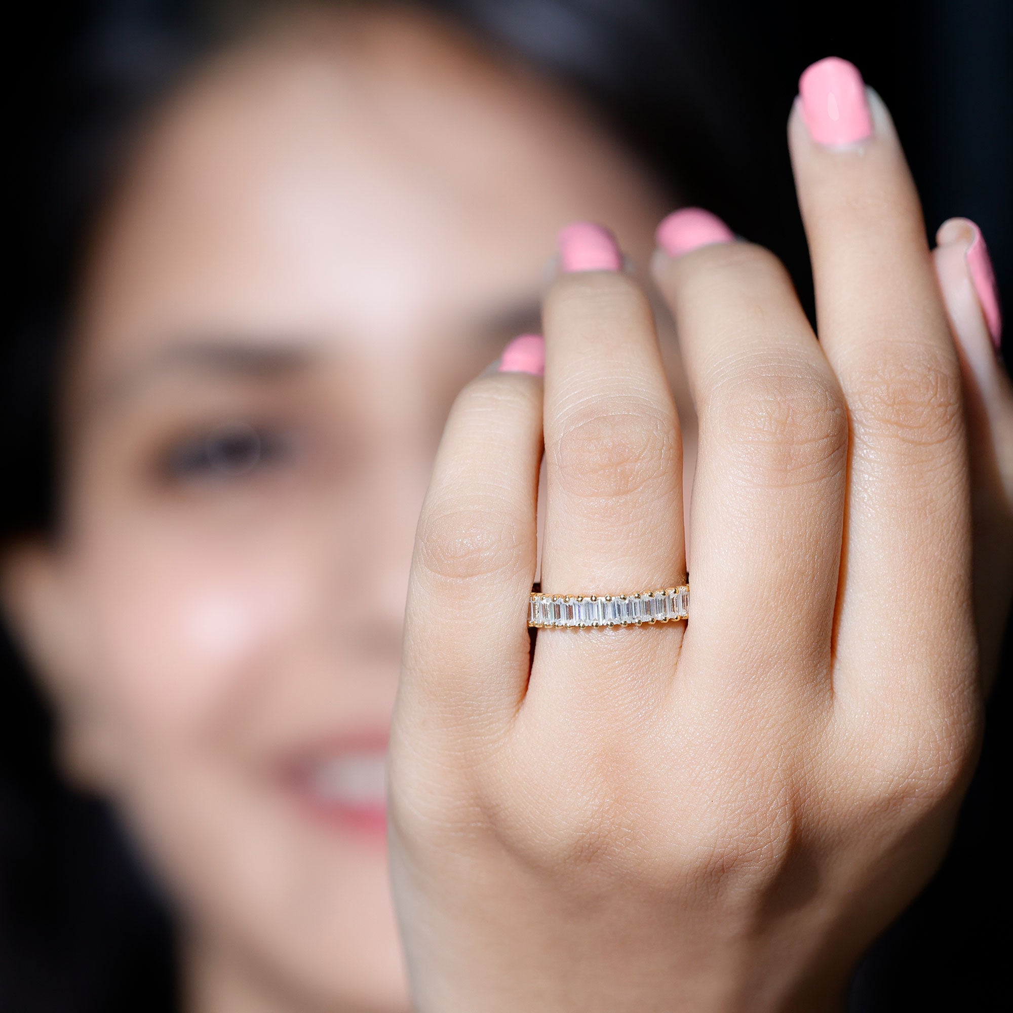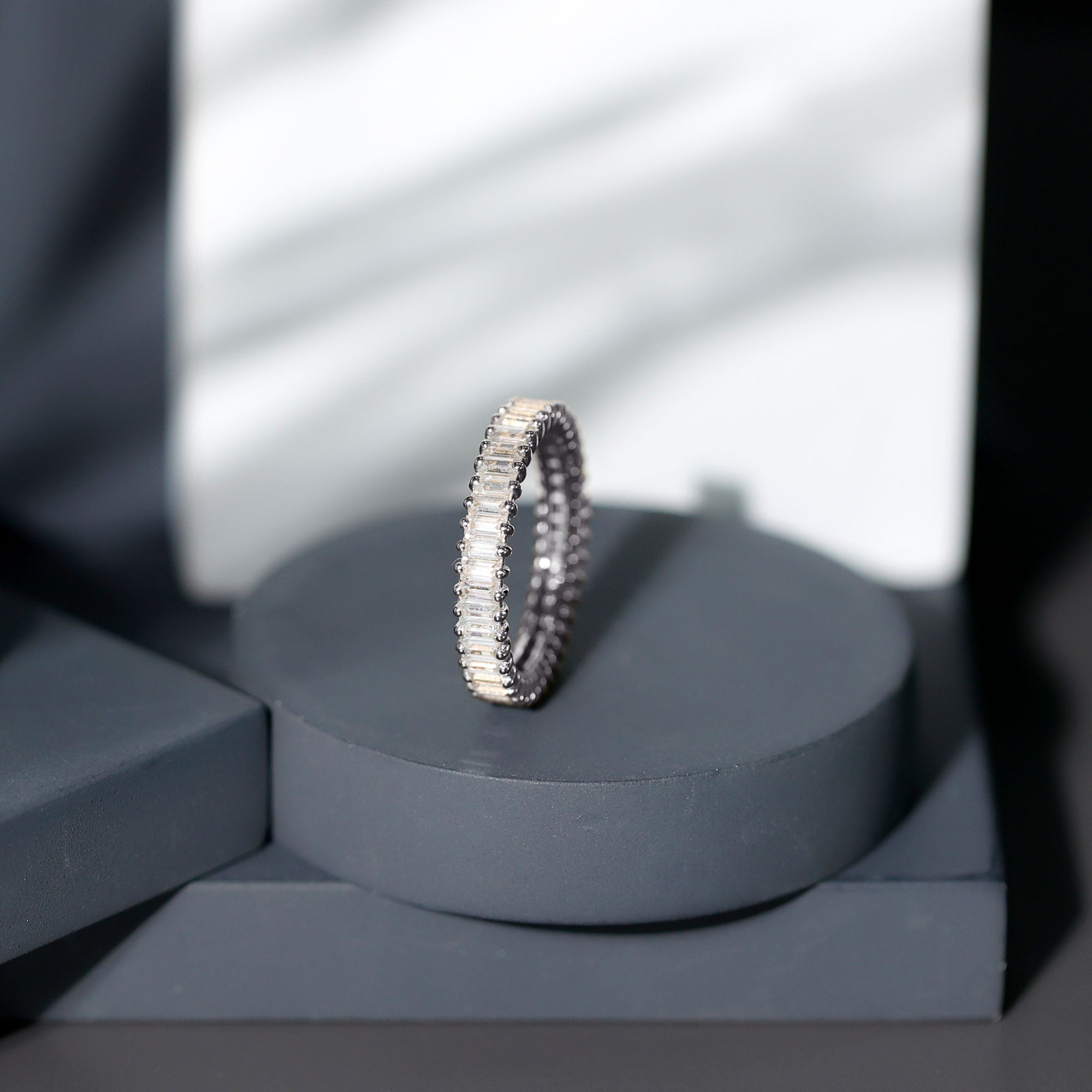Moissanite is the best alternative to diamond for all the great reasons. The brilliant and fierce moissanite stackable wedding bands can withstand the test of time. Couple are considering moissanite wedding bands leaving behind the diamond ones as moissanite is pretty affordable. Being an Eco-friendly and cruelty-free stone gives moissanite a plus point for sustainability loving brides.