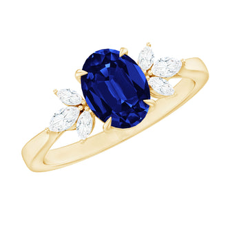 Sold out - Oval Created Blue Sapphire Solitaire Ring with Diamond Trio(3)+sp.priceRaw ? 'price price--on-sale' : 'price'">