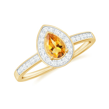 Sold out - Natural 5X7mm Pear Shape Citrine Engagement Ring with Diamond Halo+sp.priceRaw ? 'price price--on-sale' : 'price'">
