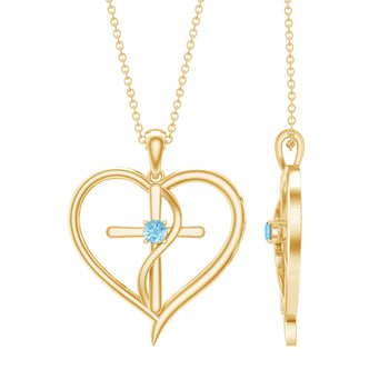 Sold out - 0.25 CT Aquamarine Cross Heart Pendant Necklace in Prong Setting+sp.priceRaw ? 'price price--on-sale' : 'price'">