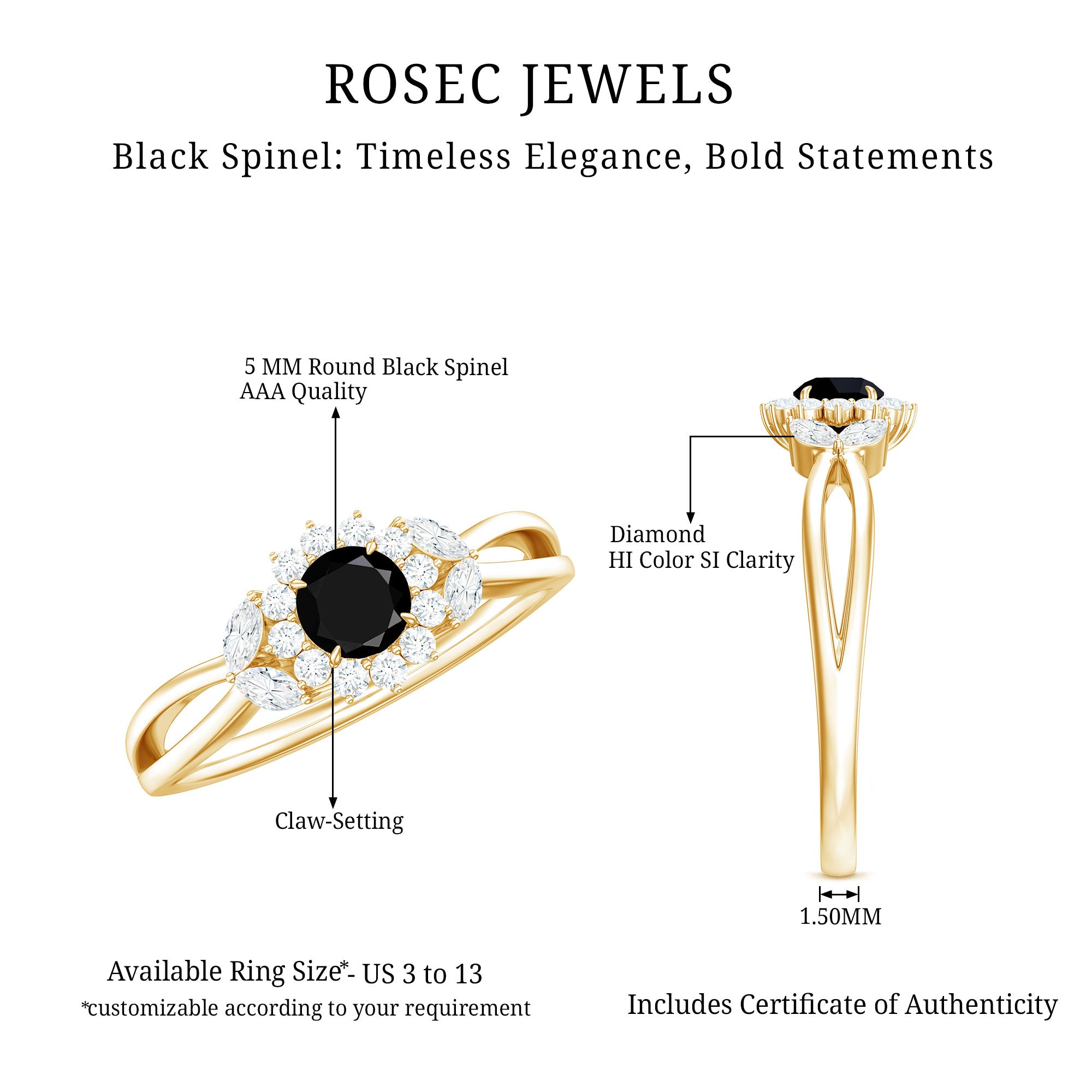 Black spinel engagement rings are expression of bold personality and will be an nontraditional yet adorable pick for women with distinct taste in jewelry. Black spinel rings at Rosec Jewels boast of intricate and delicate designs along with different shapes of the black spinel ranging from standard to fancy cuts to create charming black spinel rings that will best appeal to the choices of women.