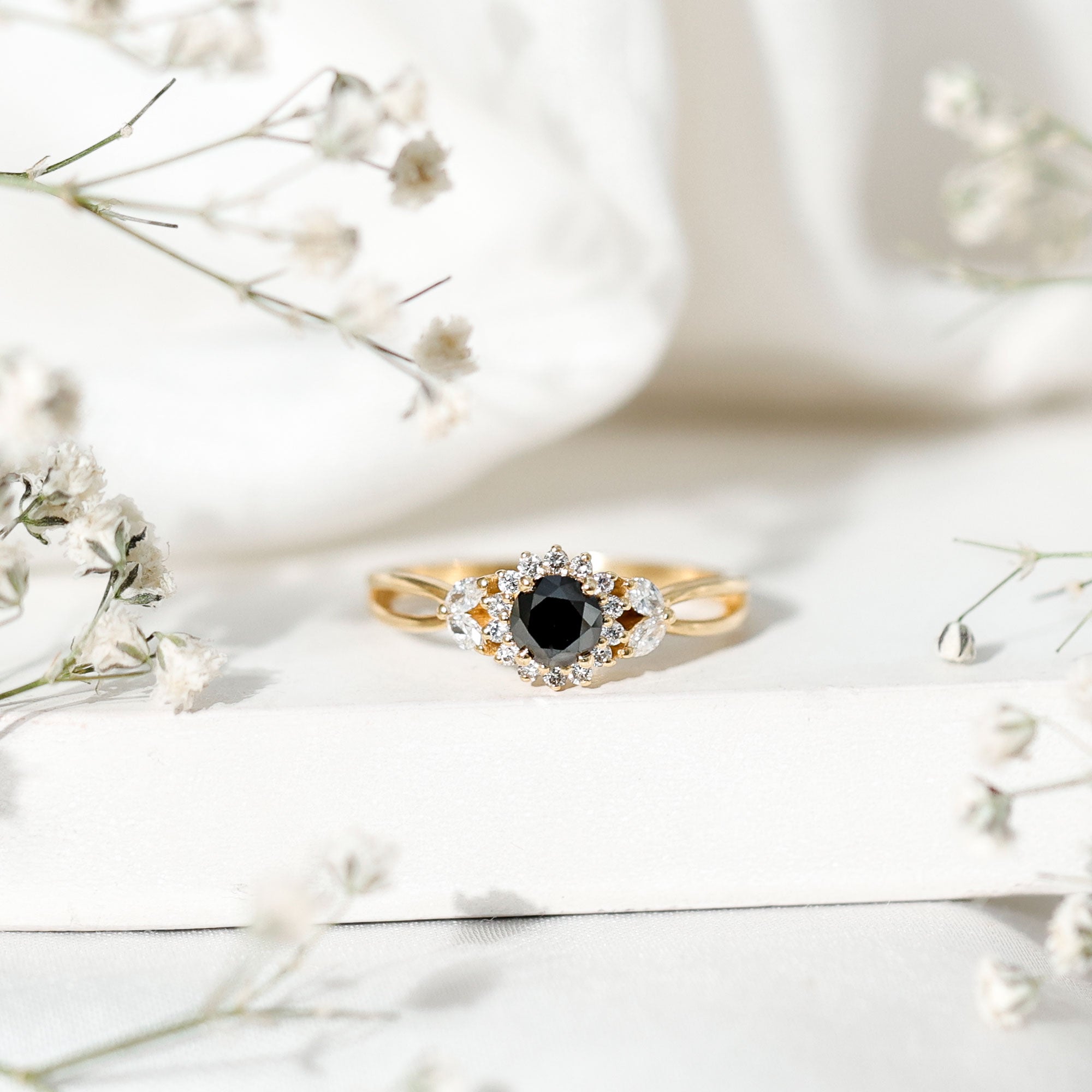 Radiating with glamour, our black spinel engagement rings come in spectacular designs when combined with variety of black spinel shapes, metal embellishments and gemstone settings. Choose from our alluring collection of black spinel solitaire ring, cocktail rings and vintage rings for engagement.