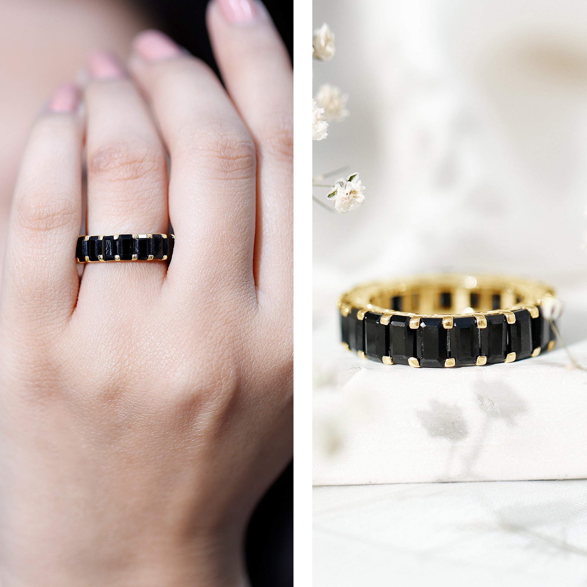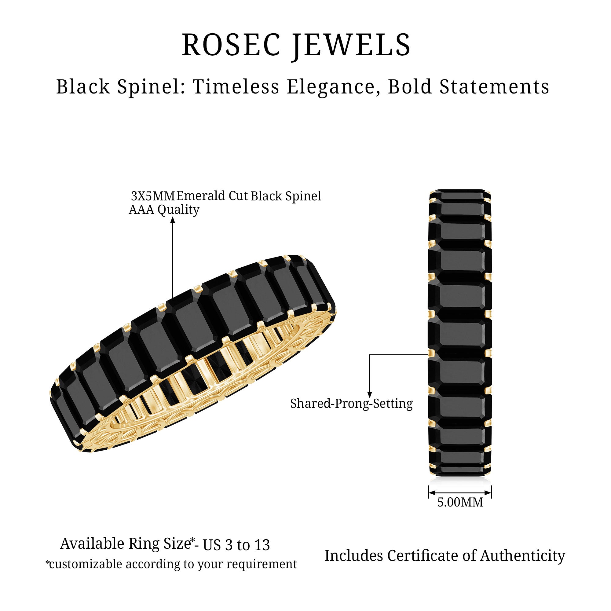 Having said that, let’s get to the most exciting part and find your favorite among the wide pool of trendy Black Spinel Gold Rings that we carry!