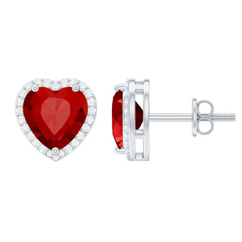 - 8 MM Lab Grown Ruby Heart Stud Earrings with Moissanite Halo+sp.priceRaw ? 'price price--on-sale' : 'price'">