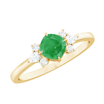 - Certified Real Cushion Cut Emerald Engagement Ring with Diamond Trio+sp.priceRaw ? 'price price--on-sale' : 'price'">