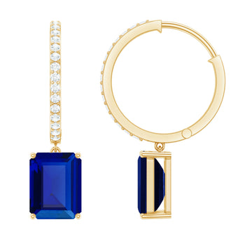 Sold out - Emerald Cut Lab Created Blue Sapphire and Diamond Hoop Drop Earrings+sp.priceRaw ? 'price price--on-sale' : 'price'">