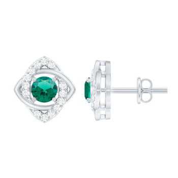 Sold out - Certified 5 MM Lab Emerald Swirl Stud Earrings with Moissanite+sp.priceRaw ? 'price price--on-sale' : 'price'">
