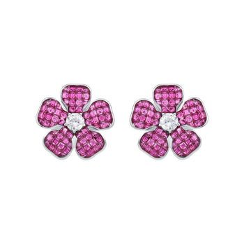 Sold out - Lab Grown Ruby Flower Stud Earrings in Sterling Silver+sp.priceRaw ? 'price price--on-sale' : 'price'">