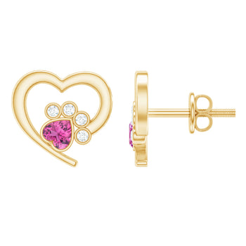 Sold out - 1/2 CT Heart Shape Pink Tourmaline and Diamond Dog Paw Stud Earrings+sp.priceRaw ? 'price price--on-sale' : 'price'">