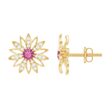 - Round Pink Tourmaline Classic Flower Stud Earring with Diamond+sp.priceRaw ? 'price price--on-sale' : 'price'">