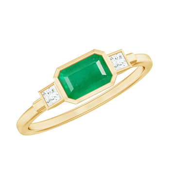Sold out - Octagon shape Emerald and Diamond East-West Promise Ring in Bezel Setting+sp.priceRaw ? 'price price--on-sale' : 'price'">