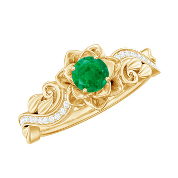 - Certified 5 MM Emerald and Diamond Flower Engagement Ring(3)+sp.priceRaw ? 'price price--on-sale' : 'price'">