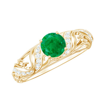 Sold out - Vintage Looking Emerald and Diamond Engagement Ring for Women+sp.priceRaw ? 'price price--on-sale' : 'price'">