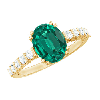 - 8x10mm Oval Cut Lab Created Emerald Solitaire Engagement Ring with Diamond+sp.priceRaw ? 'price price--on-sale' : 'price'">