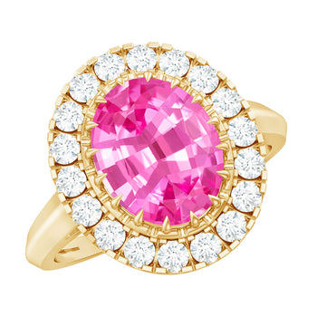 Sold out - Oval Lab Grown Pink Sapphire Vintage Style Ring with Moissanite Halo+sp.priceRaw ? 'price price--on-sale' : 'price'">