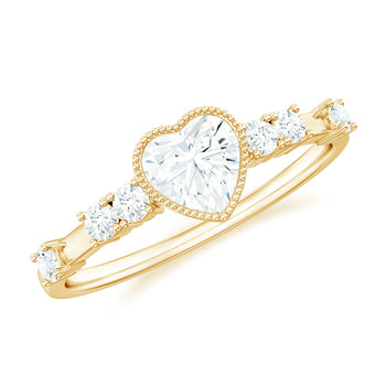 Heart Engagement Rings: Romantic rings featuring heart shaped gemstone or heart metal frame adorned with smaller gemstones, are ideal jewel pieces for engagements.