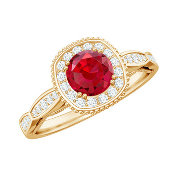 Sold out - Vintage Inspired Round Created Ruby Engagement Ring with Diamond Halo(3)+sp.priceRaw ? 'price price--on-sale' : 'price'">