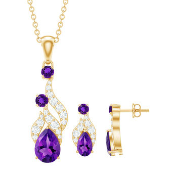Sold out - Real Amethyst and Diamond Bridal Dangle Pendant Earrings Set+sp.priceRaw ? 'price price--on-sale' : 'price'">