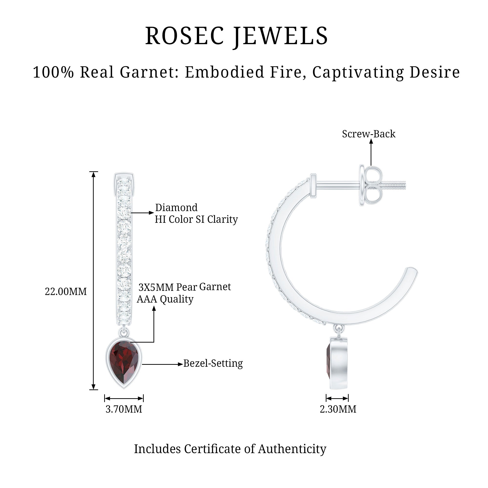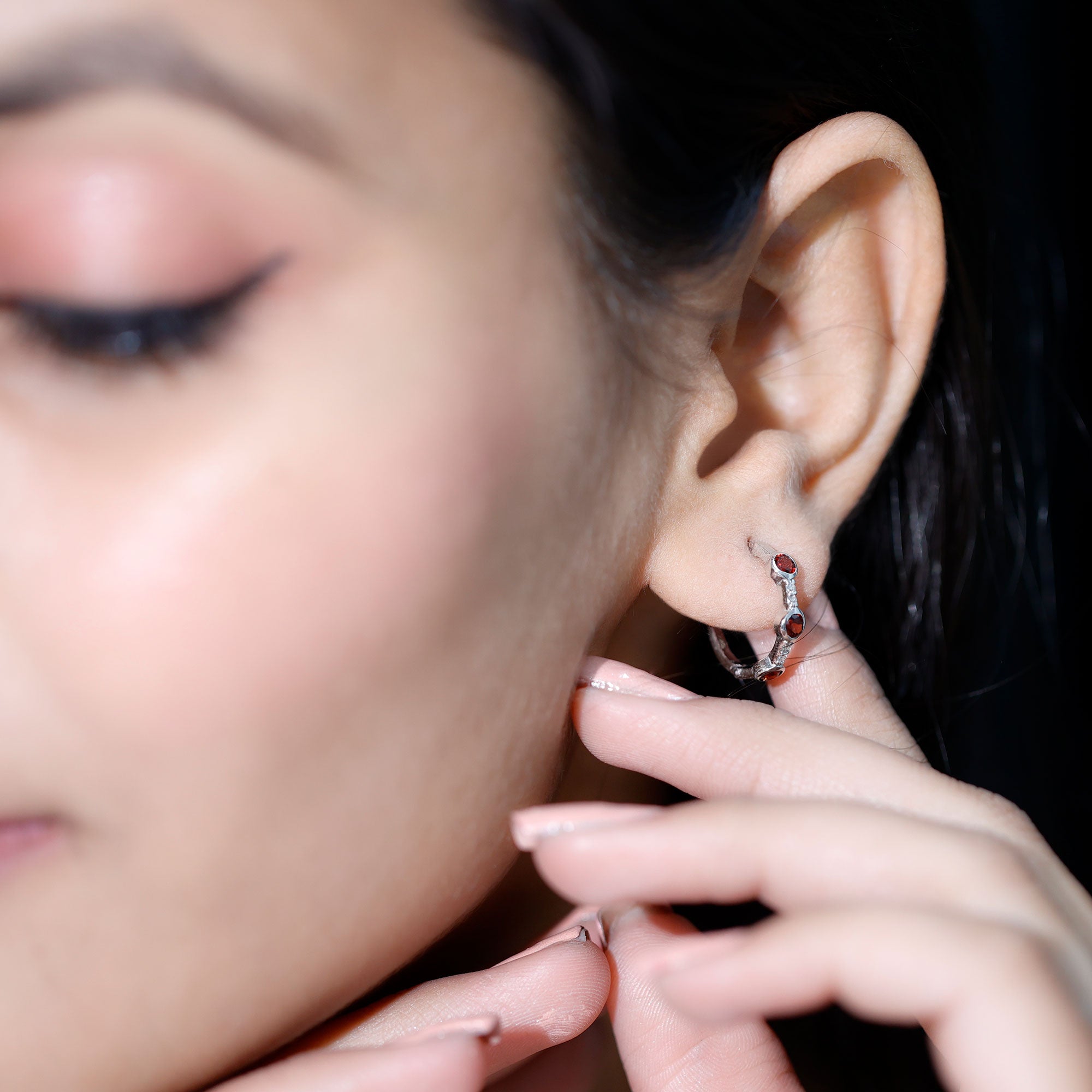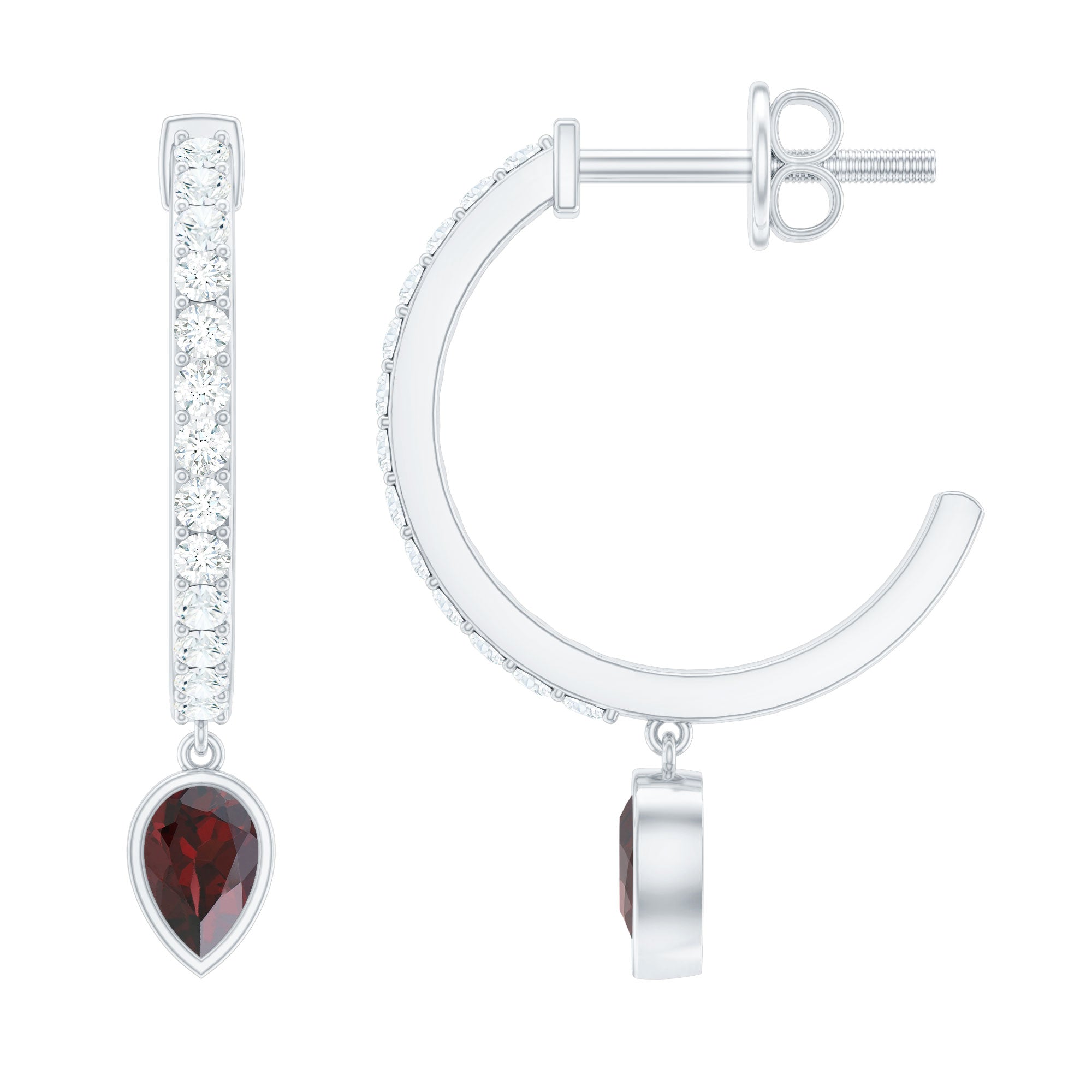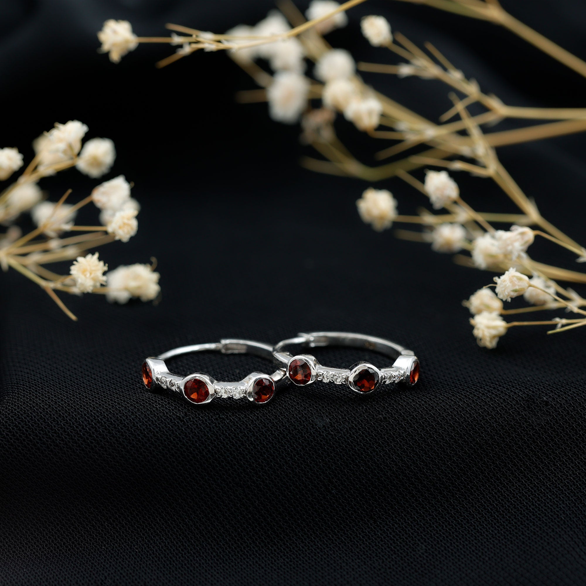 Garnet Hoop Earrings: - A popular style of earrings, these garnet hoop earrings often feature circular or semi-circular shapes. You know what's the best? These types of earpieces are embellished with rich red garnet that sets all around the earrings and grabs all the attention. Our hoop earrings are crafted with diverse metals such as white gold, yellow gold, and silver. Such pieces offer versatility that complements casual or formal looks.