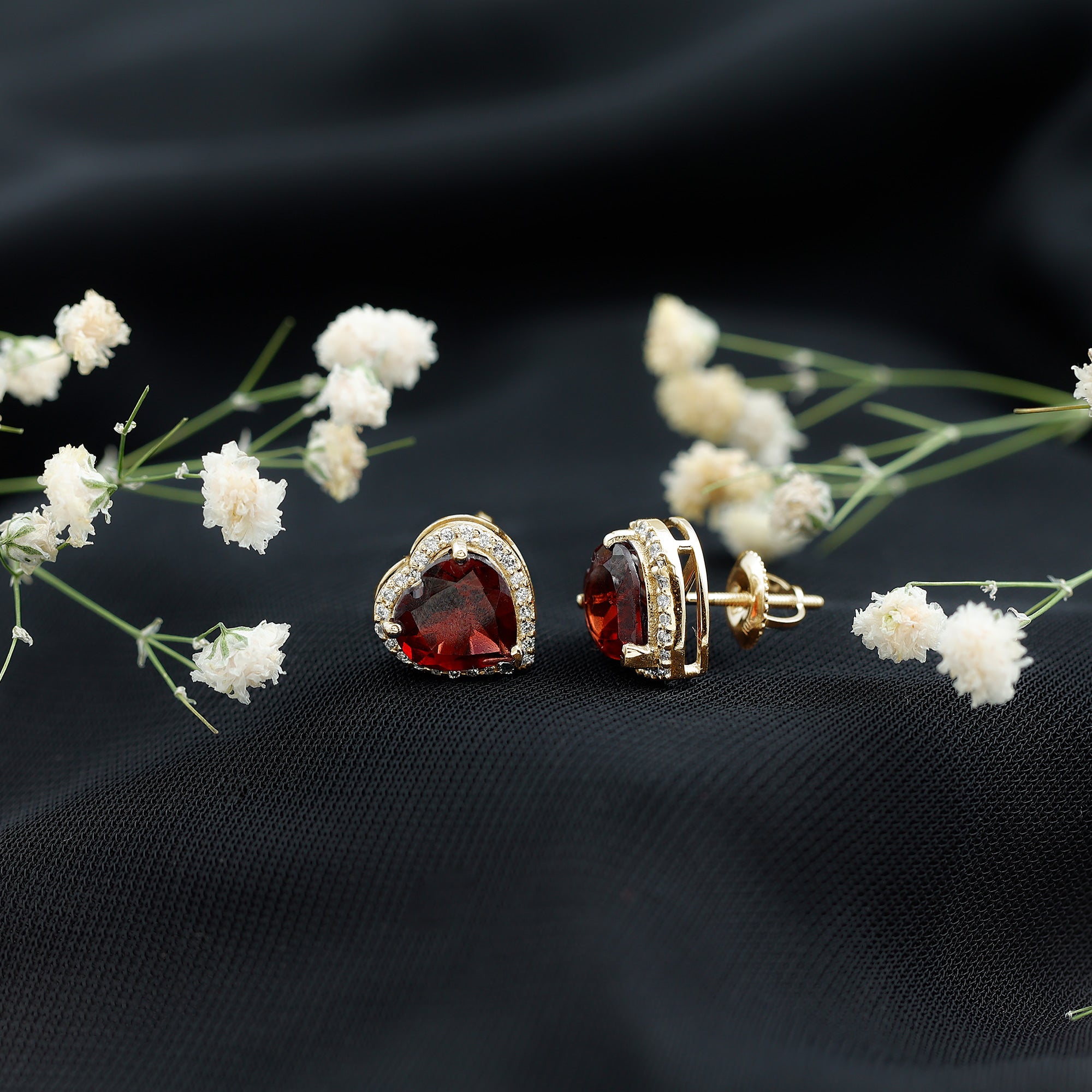 Garnet Solitaire Earrings: - Highlights the beauty of the garnet stone as a center of attraction, often crafted in premium metals like white gold, yellow gold, and sterling silver. These earrings would be a perfect match to everyday outfits or special wear apparels.