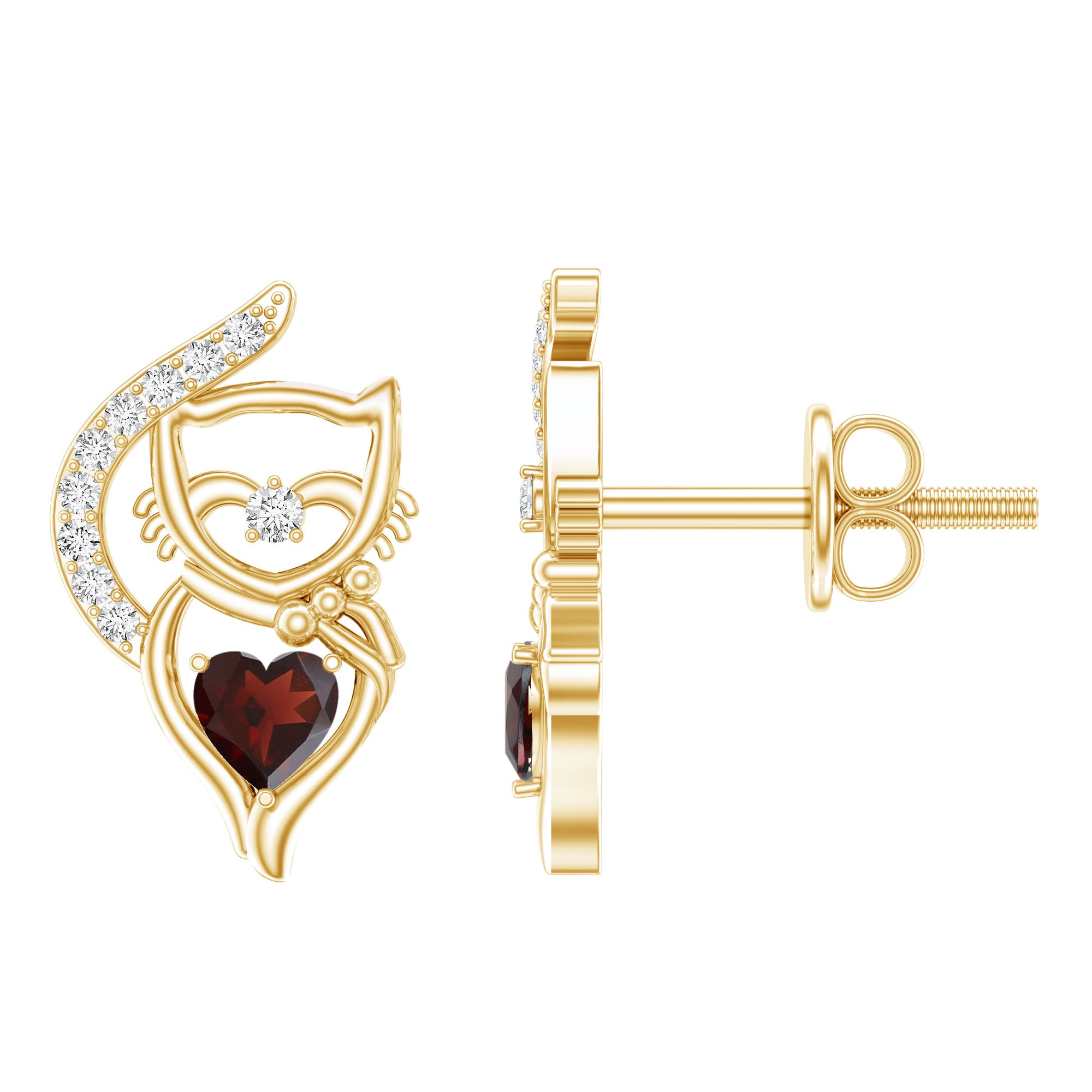 Garnet Stud Earrings: - These are an elegant accessory that features vibrant garnet gemstones set in white gold or yellow gold metal. The stud ear pieces directly go through the earlobe, which usually includes a screw back, flat screw, and push-back findings to keep the earrings securely in place. Mainly, these styles of earrings carry the deep red color garnet gemstone symbolizes love, trust, and commitment. Their classic and simplicity makes these studs comfortable for everyday wear.