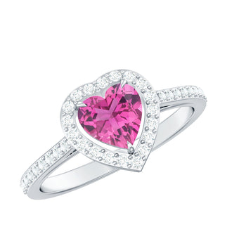 Sold out - 1 CT Heart Shape Created Ruby Solitaire Engagement Ring with Diamond+sp.priceRaw ? 'price price--on-sale' : 'price'">