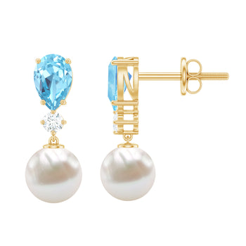 Sold out - Handpicked Pearl Drop Earrings with Aquamarine and Moissanite+sp.priceRaw ? 'price price--on-sale' : 'price'">