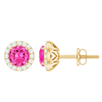 Sold out - Lab Created Pink Sapphire and Diamond Halo Stud Earrings+sp.priceRaw ? 'price price--on-sale' : 'price'">