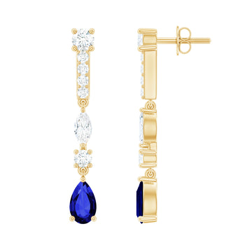 Sold out - Pear Cut Created Blue Sapphire and Moissanite Long Dangle Earrings+sp.priceRaw ? 'price price--on-sale' : 'price'">