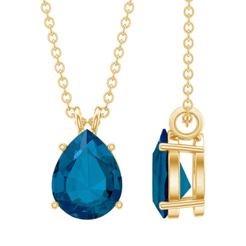 Sold out - 7X10MM London Blue Topaz Solitaire Teardrop Necklace With Chain+sp.priceRaw ? 'price price--on-sale' : 'price'">