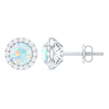 Sold out - 5 MM Round Rainbow Opal Stud Earrings with Moissanite+sp.priceRaw ? 'price price--on-sale' : 'price'">