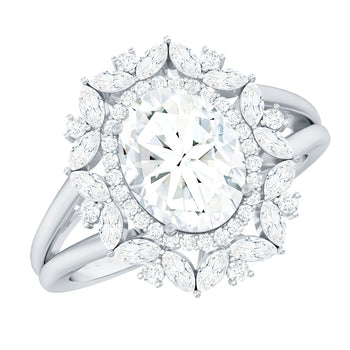 Sold out - Certified 7X9 MM Oval Moissanite Double Halo Engagement Ring+sp.priceRaw ? 'price price--on-sale' : 'price'">